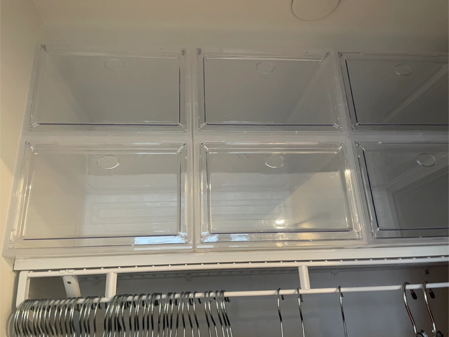 Selling some clear stackable storage bins. 12 total available. These are great for organizing your closet or any space in your home! They're in excellent condition and ready to help you declutter