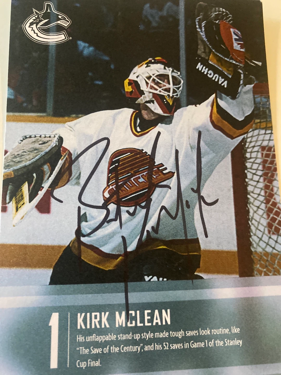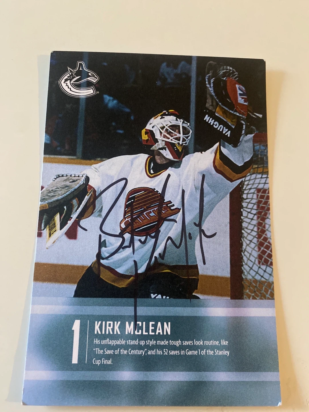 Selling an autographed photo of Kirk McLean, the former Canucks goalie! It's a great piece of memorabilia for any hockey fan or collector open to offers