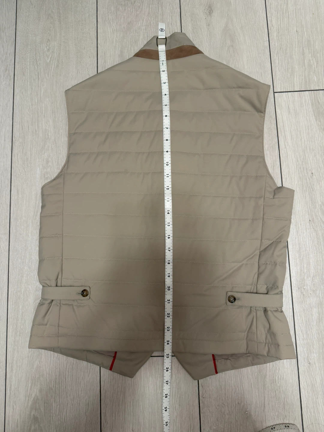 Refined Eleventy padded fitted gilet crafted in matte quilted nylon for a clean, modern look. This elegant sleeveless layering piece features classic lapels, a button-front closure, and two snap side pockets for everyday functionality. Finished with a rear adjustable strap for a tailored fit. Expertly made in Italy with premium materials and understated craftsmanship. Originally purchased from Harry Rosen (Toronto).