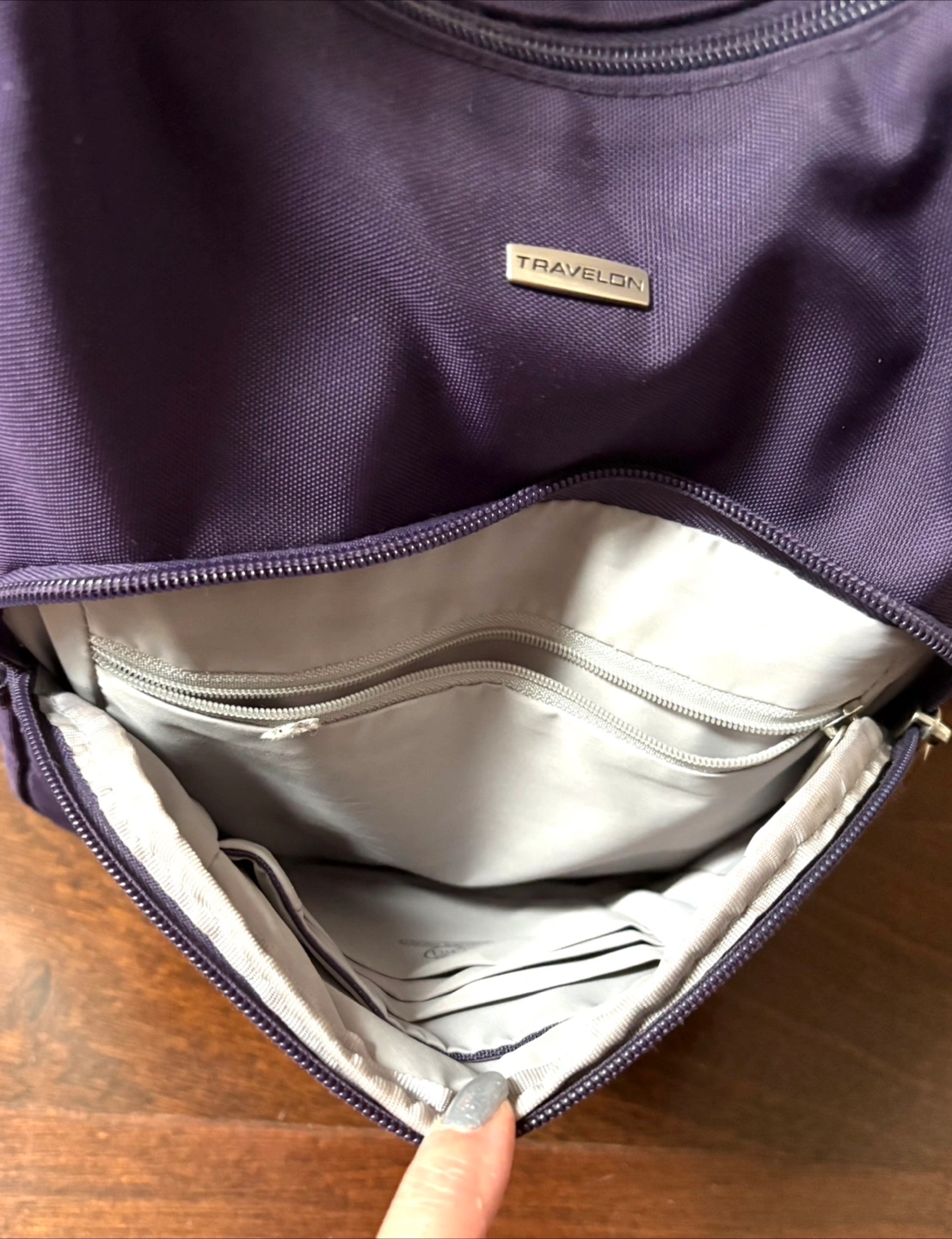Selling a Travelon Anti-Theft Classic Essential Messenger Bag in purple! It's in great condition and ready for a new owner. This bag is designed with anti-theft features to keep your belongings safe and secure while you're on the go. It's the perfect size for everyday use and travel
