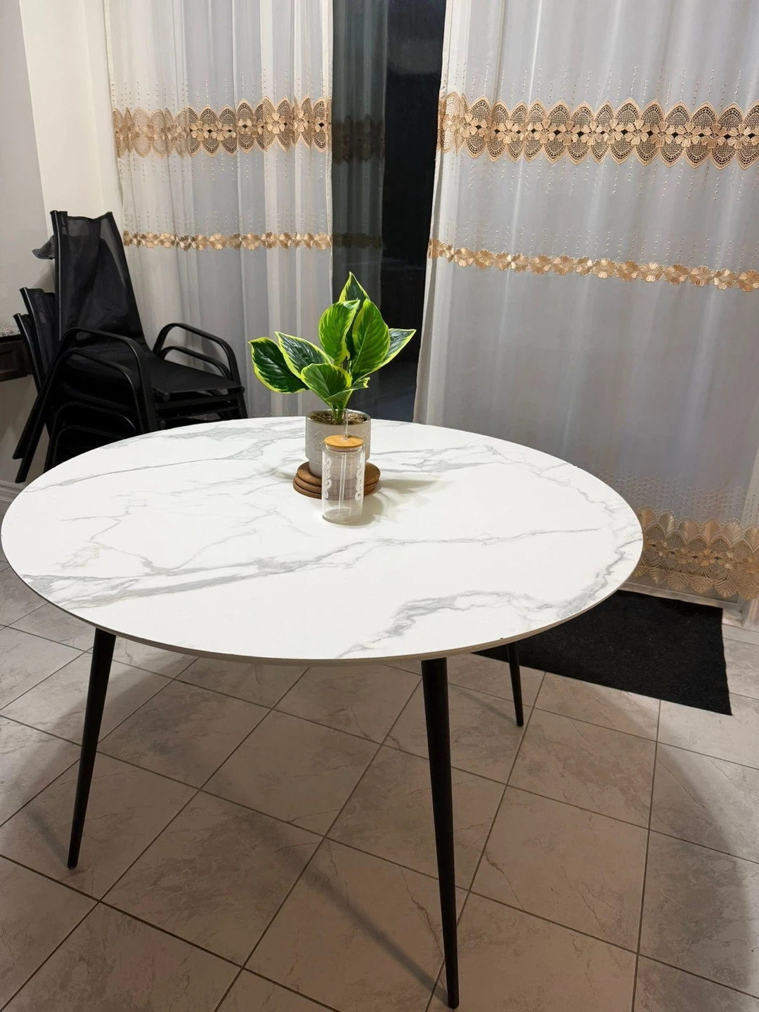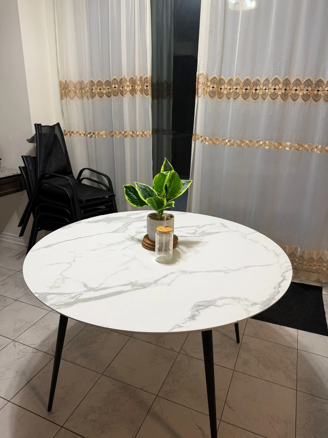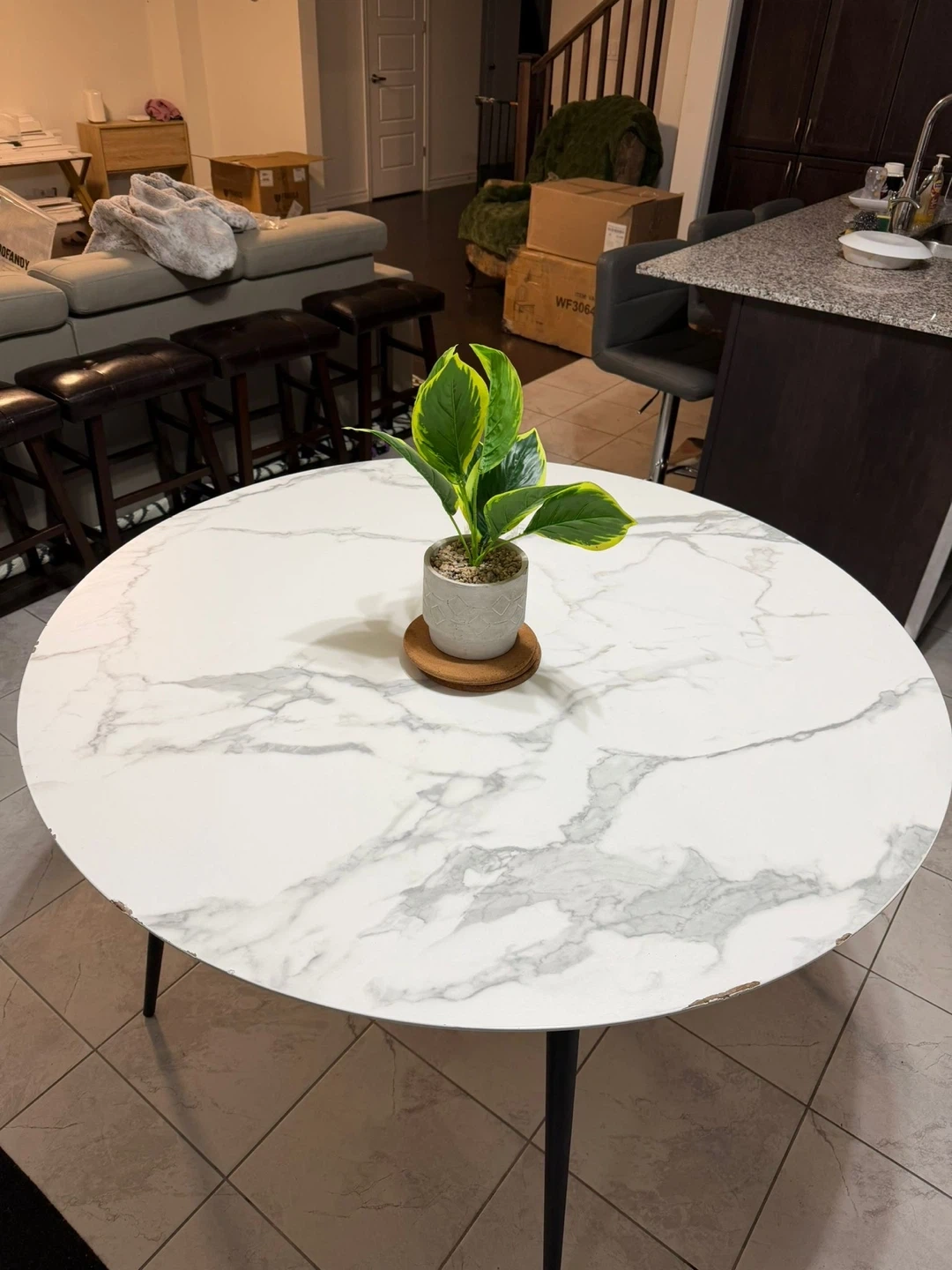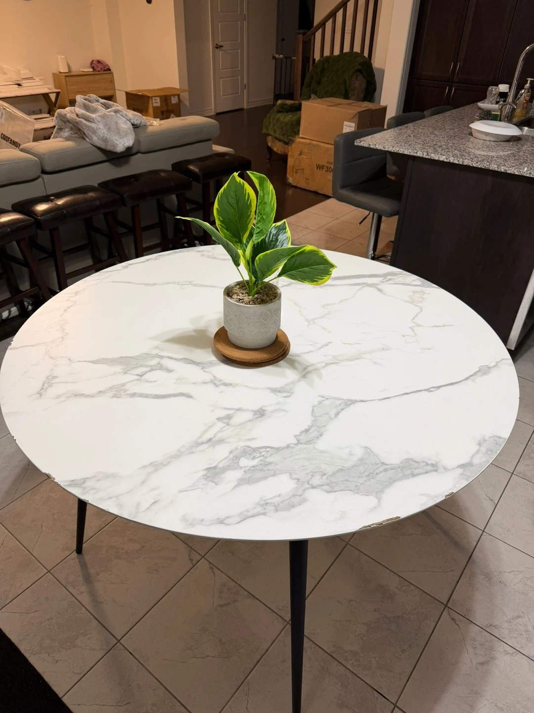 Buy & SellRound Marble Dining TableRound Marble Dining Table$100Selling a round dining table with a marble-patterned top and black legs. There is some damage to the edge of the table, as shown in the photos.ConditionGoodWHERE TO MEETMayfield driveView MapSELLERverifiedEmmaNW Brampton1576 reviews0 chats·0 favorites·38 viewsSEND CHAT TO SELLERHi Emma! I’m interested in your listing.Hi Emma! I’m interested in your listing.Get the Karrot app to chatSign In to chat