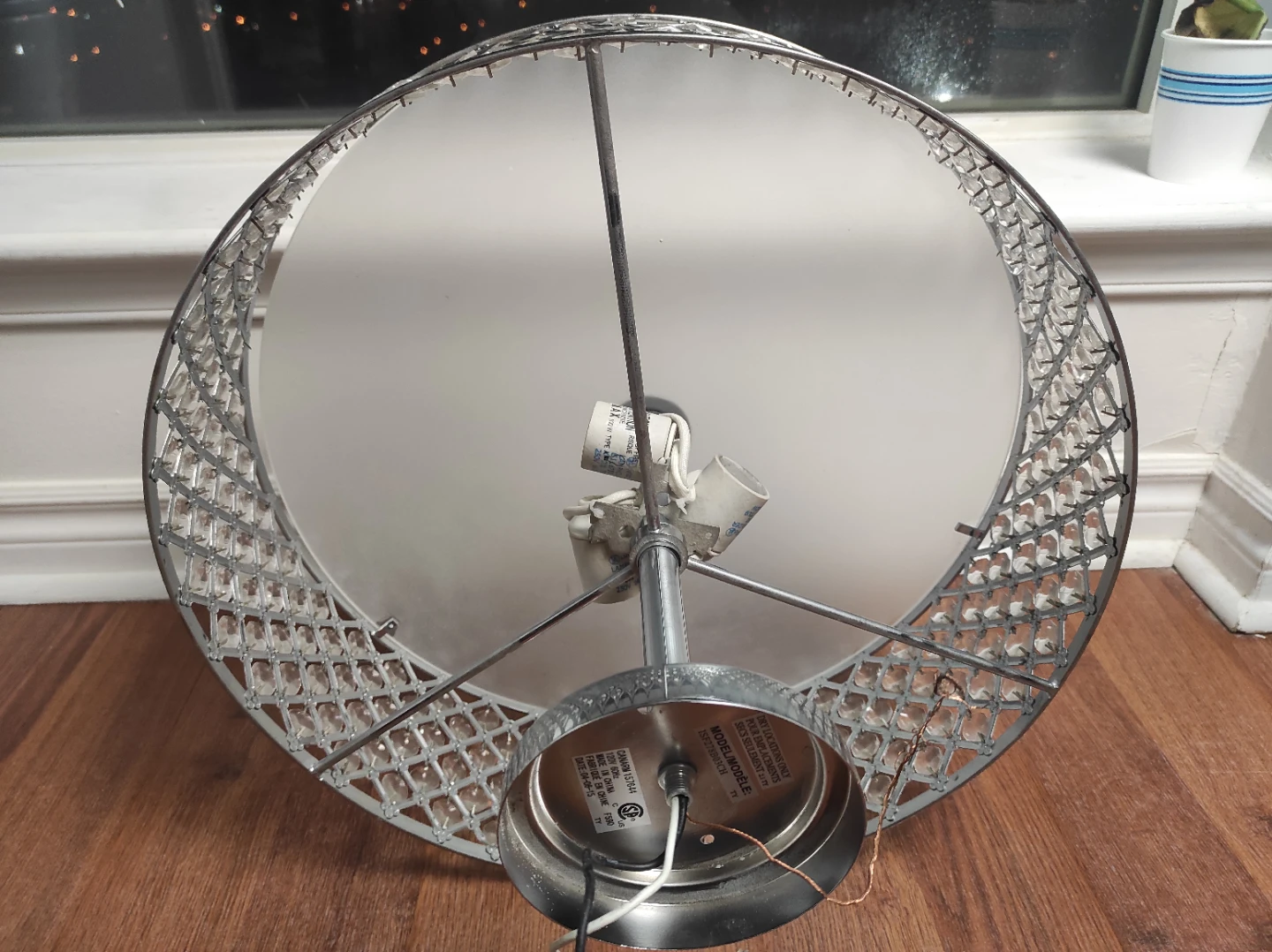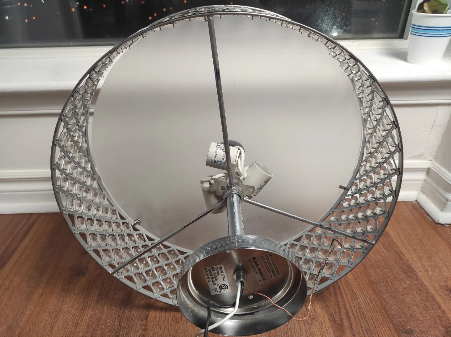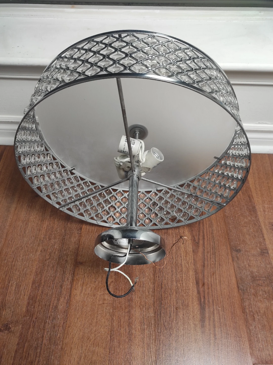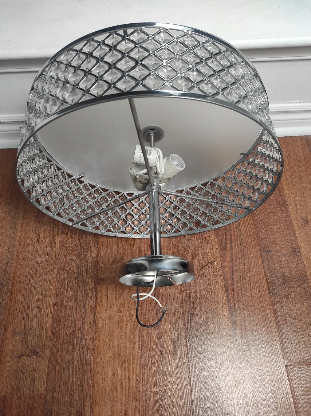 Selling a ceiling light fixture with a crystal-style design! It's in good condition and would add a touch of elegance to any room. The fixture has a metal frame with crystal-like accents. It's ready to be installed and brighten up your spacecontemporary and modern style lighting fixture suitable for apartments, condos, and houses. Ideal replacement ceiling light, chandelier lamp, or indoor lighting fixture.
