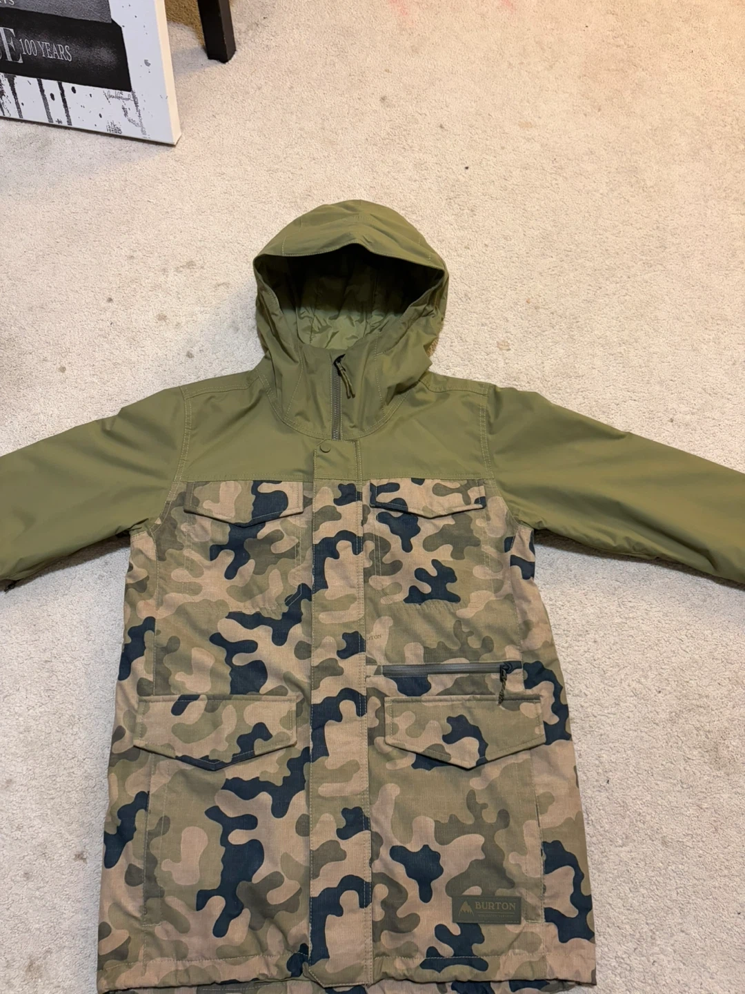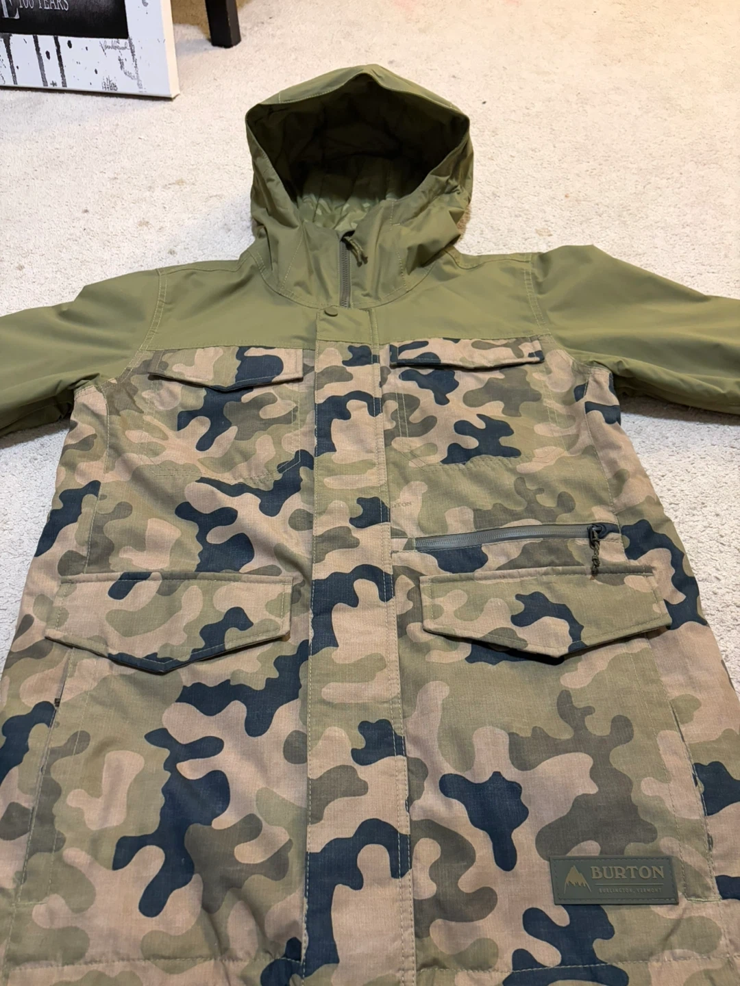 Burton snowboard jacket in a camo and green colorway! It’s in great condition and ready for the slopes. I used it twice last season and upgraded, so I’m selling it.
