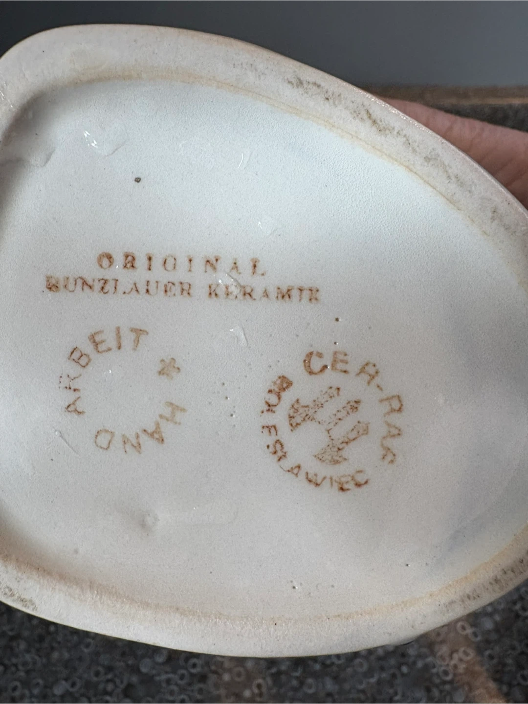 Authentic Bunzlauer Keramik cat pitcher, hand-painted in Poland. Clearly marked on the bottom. Unique cat design with bird detail. Excellent condition with no chips or cracks.