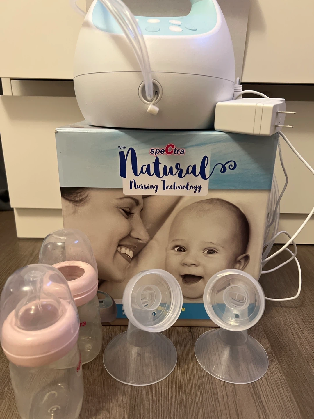 Selling a Spectra Natural Nursing Technology breast pump. It comes with bottles, and a power adapter. The original box is included as well! No flanges