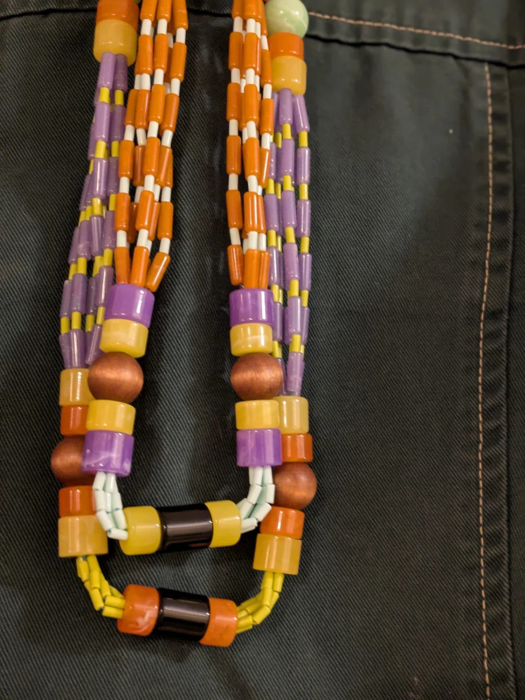 Imported. Out of Box. Completely Brand New. Here's a fun and colourful beaded necklace! It features a variety of shapes and colours that adds a pop of colour to any outfit