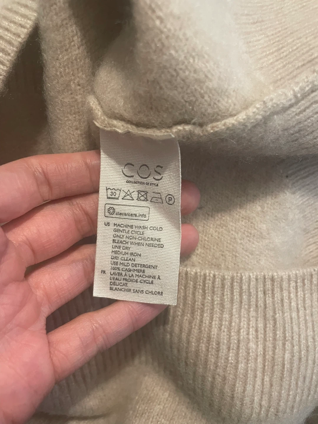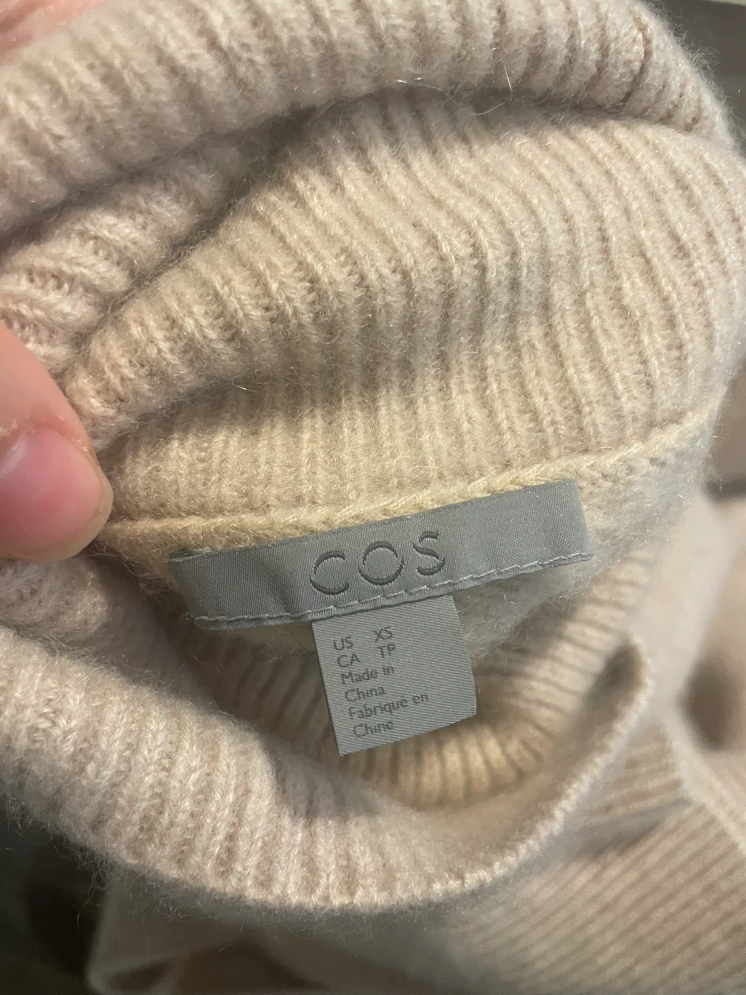 COS XS Beige 100% Cashmere Turtleneck Sweater