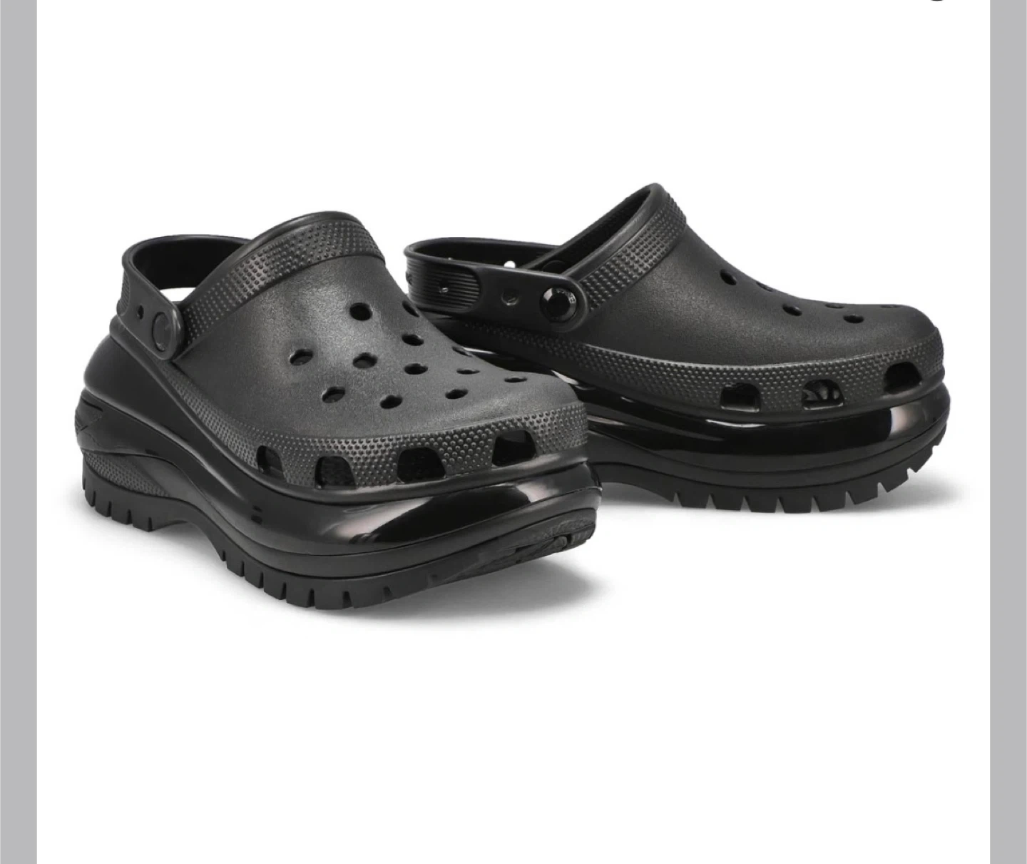 Selling a pair of Crocs Mega Crush clogs in black. These are super stylish and comfy! Perfect for adding a bit of height and flair to your everyday look. They're in great condition and ready for a new owner