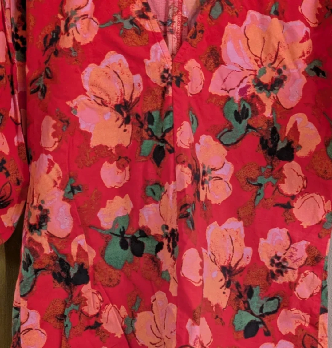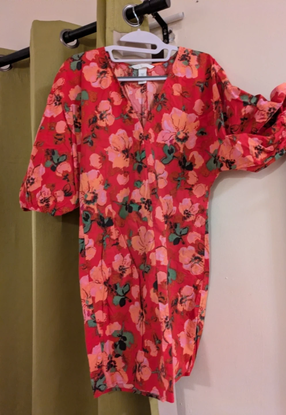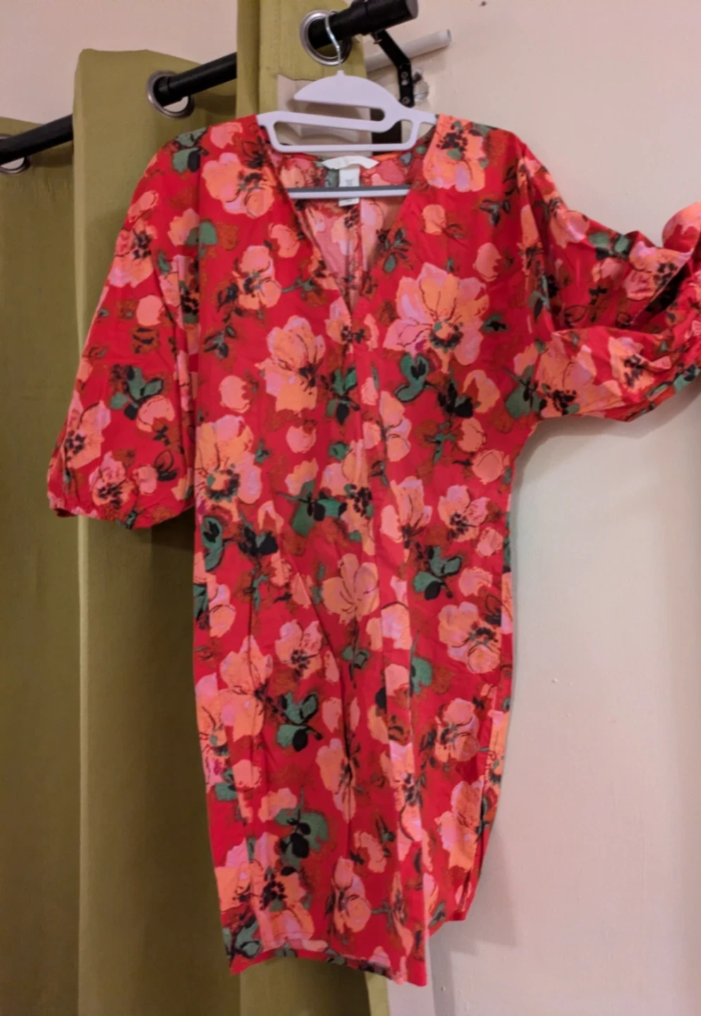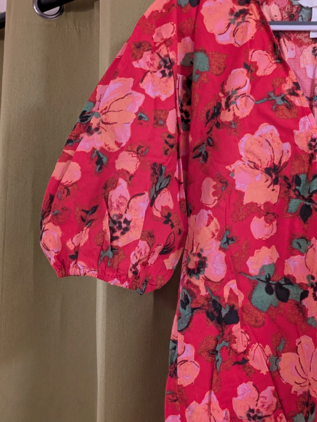 H&M Volumous Sleeves Red Floral Dress - Size Small