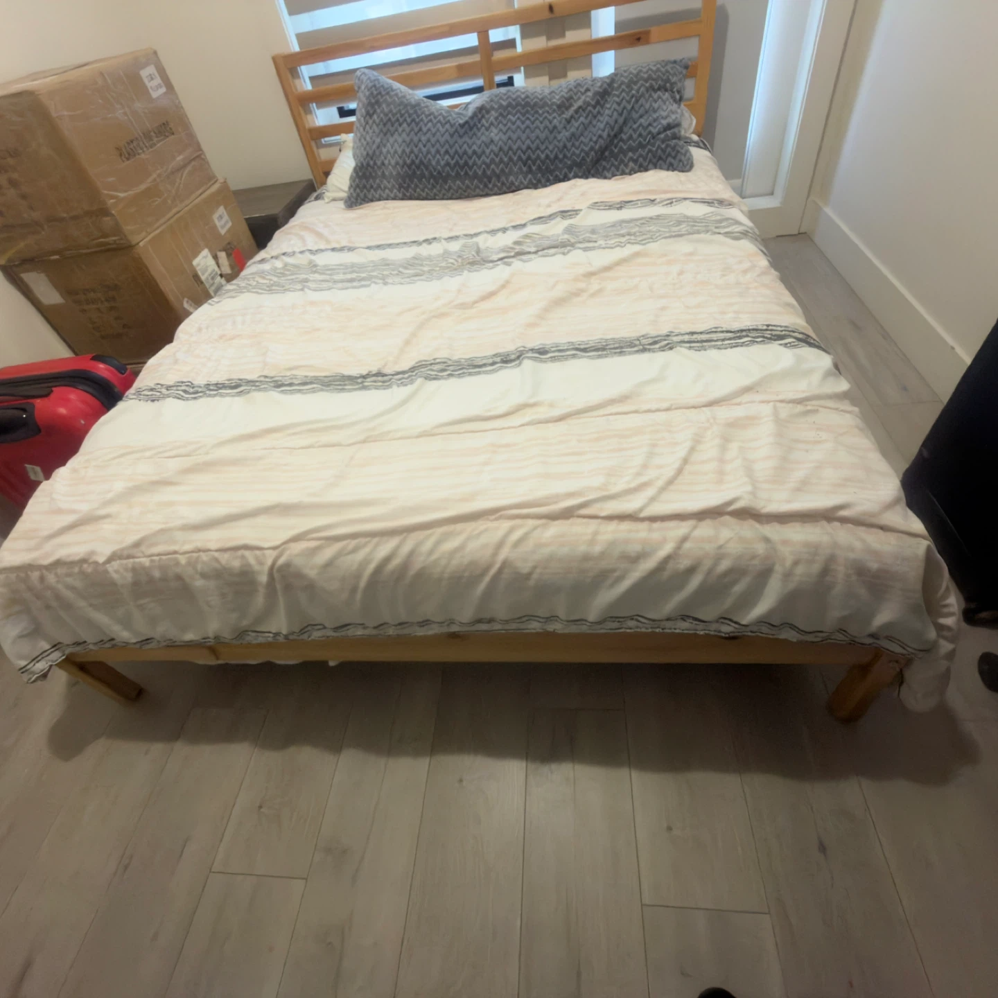 Buy & SellQueen Size Bed Frame + mattress + night standQueen Size Bed Frame + mattress + night stand$149Selling a queen size bed frame! It's in great condition and ready for a new home. Includes the matress and one night stand.ConditionGoodWHERE TO MEETCheck LocationView MapSELLERverifiedBrunoQueensborough881 review0 chats·0 favorites·50 viewsSEND CHAT TO SELLERHi Bruno! I’m interested in your listing.Hi Bruno! I’m interested in your listing.Get the Karrot app to chatSign In to chat
