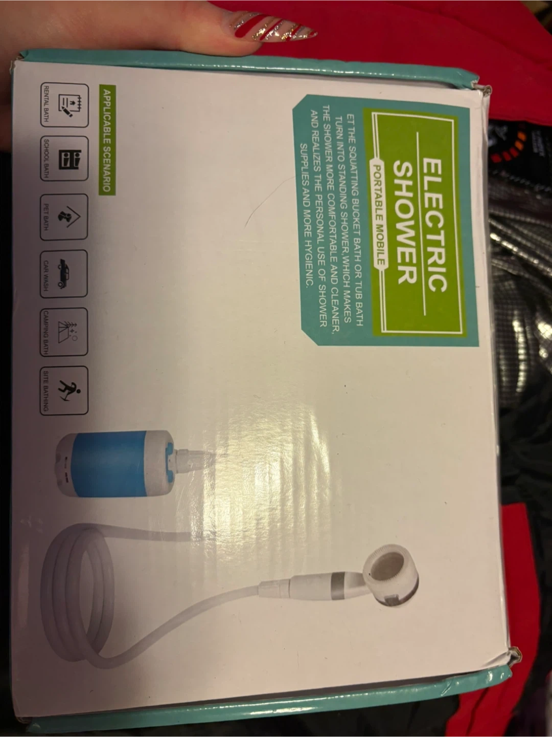 Selling a brand new, portable electric shower still in its original box! It's designed to turn any bucket bath or tub bath into a standing shower, making it more comfortable and cleaner. Perfect for rental baths, school baths, pet baths, car washes, camping baths, and site bathing