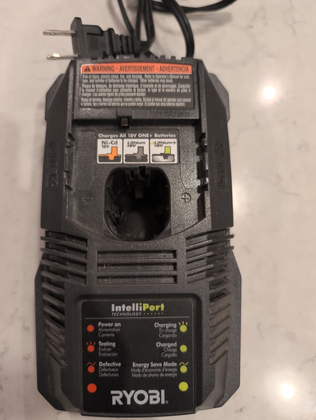 Selling a used Ryobi ONE+ battery charger. It charges all 18V ONE+ batteries, including Ni-Cd and Lithium-ion batteries. This is model P118.