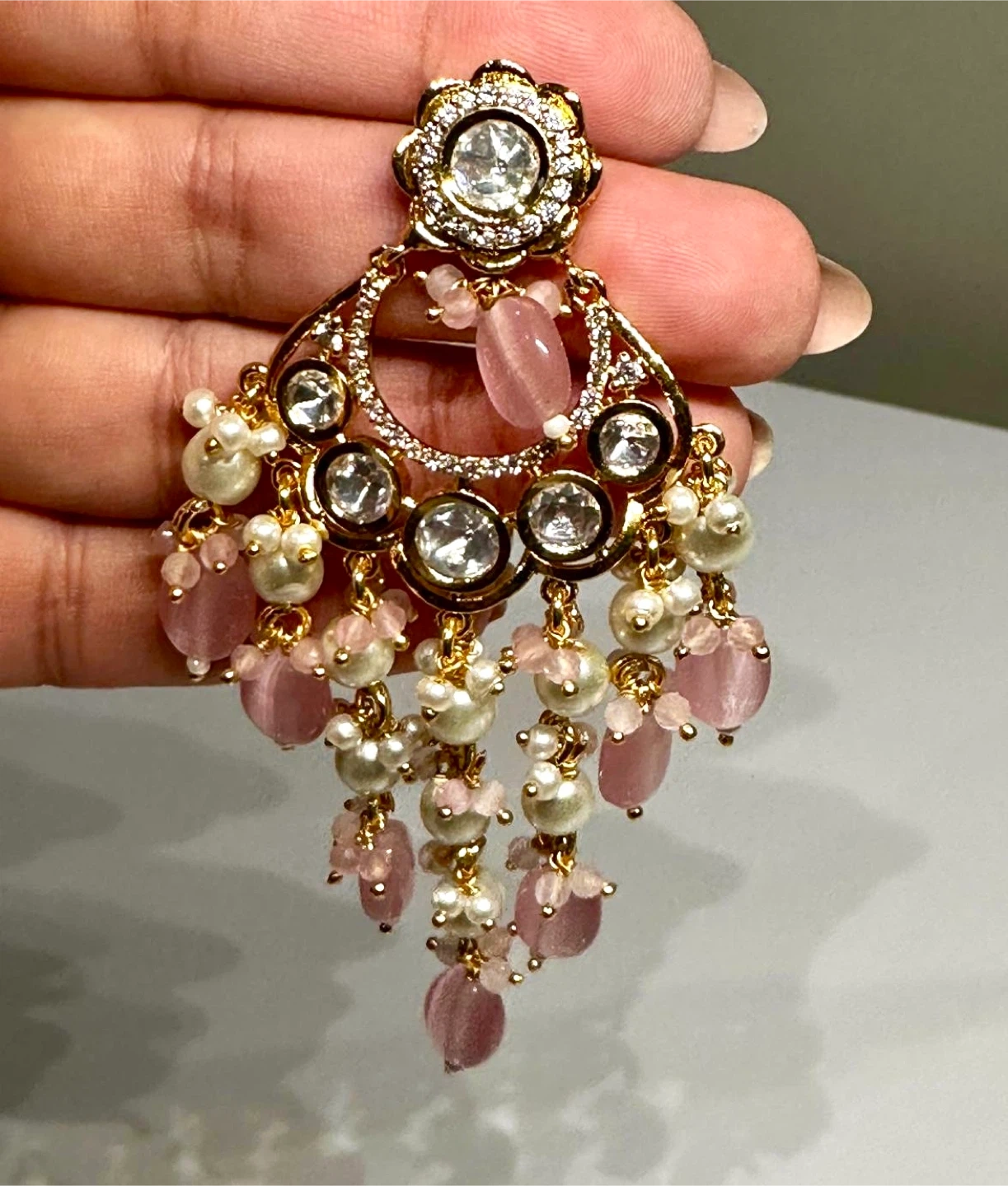 Polki pearl chandbali earrings !
