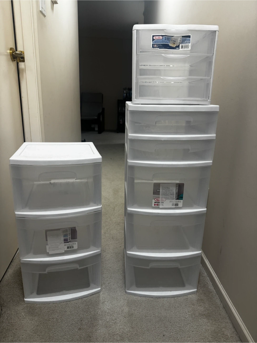 Selling Sterilite clear plastic storage drawers. They're perfect for organizing your space and keeping things tidy. Great for closets, bedrooms, or anywhere you need extra storage! They're in great condition and ready to use