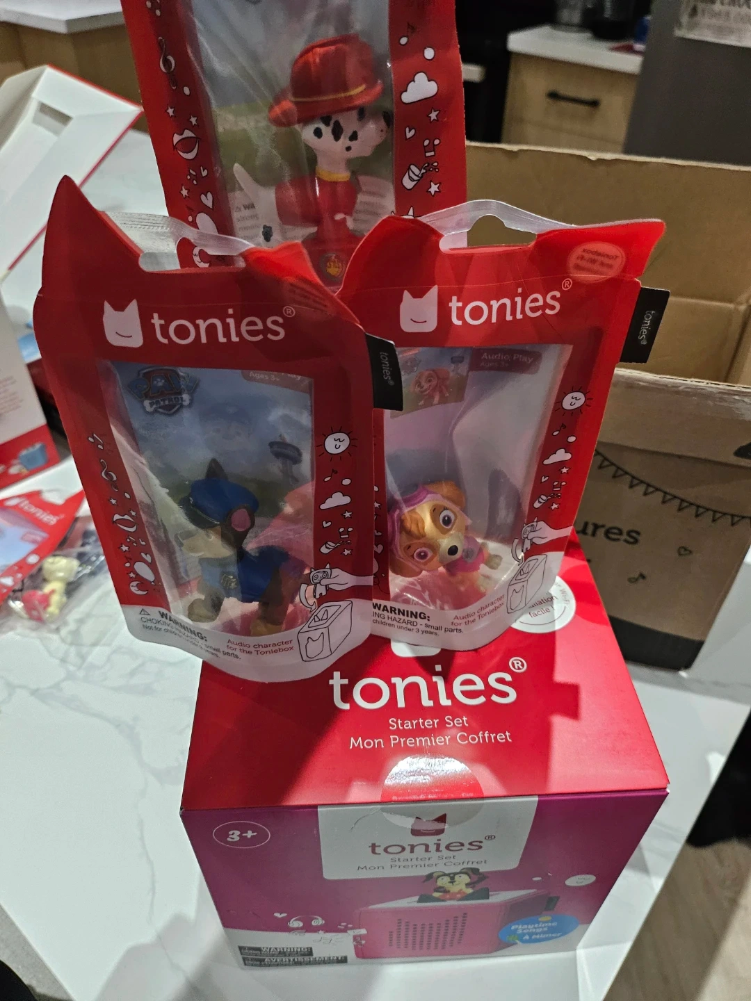 Selling a brand new Tonies Starter Set in pink! It comes with the box and includes Paw Patrol figures. This is a great audio system for kids 3+