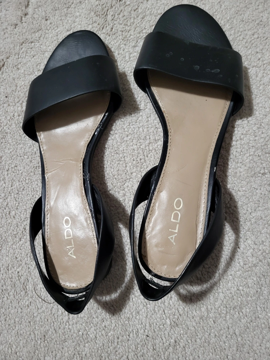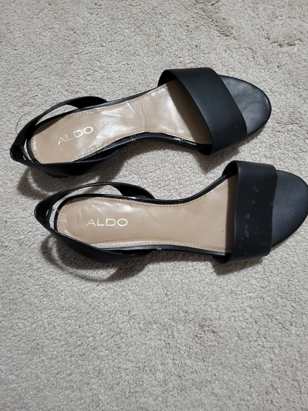 Selling a pair of ALDO black sandals in size 7. They're in good condition and would be a great addition to your summer wardrobe! Perfect for casual outings or dressing up a bit