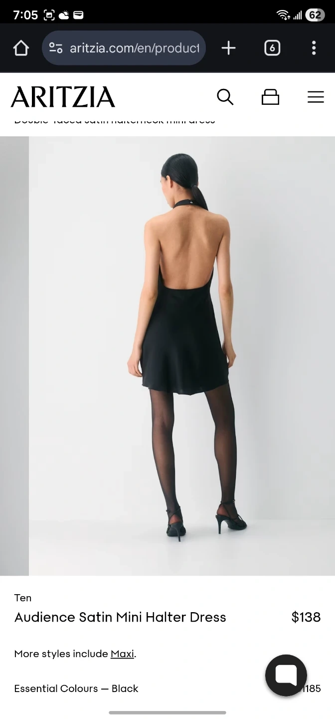 Selling a no used Aritzia Babaton Audience Satin Mini Halter Dress in black, size 6.