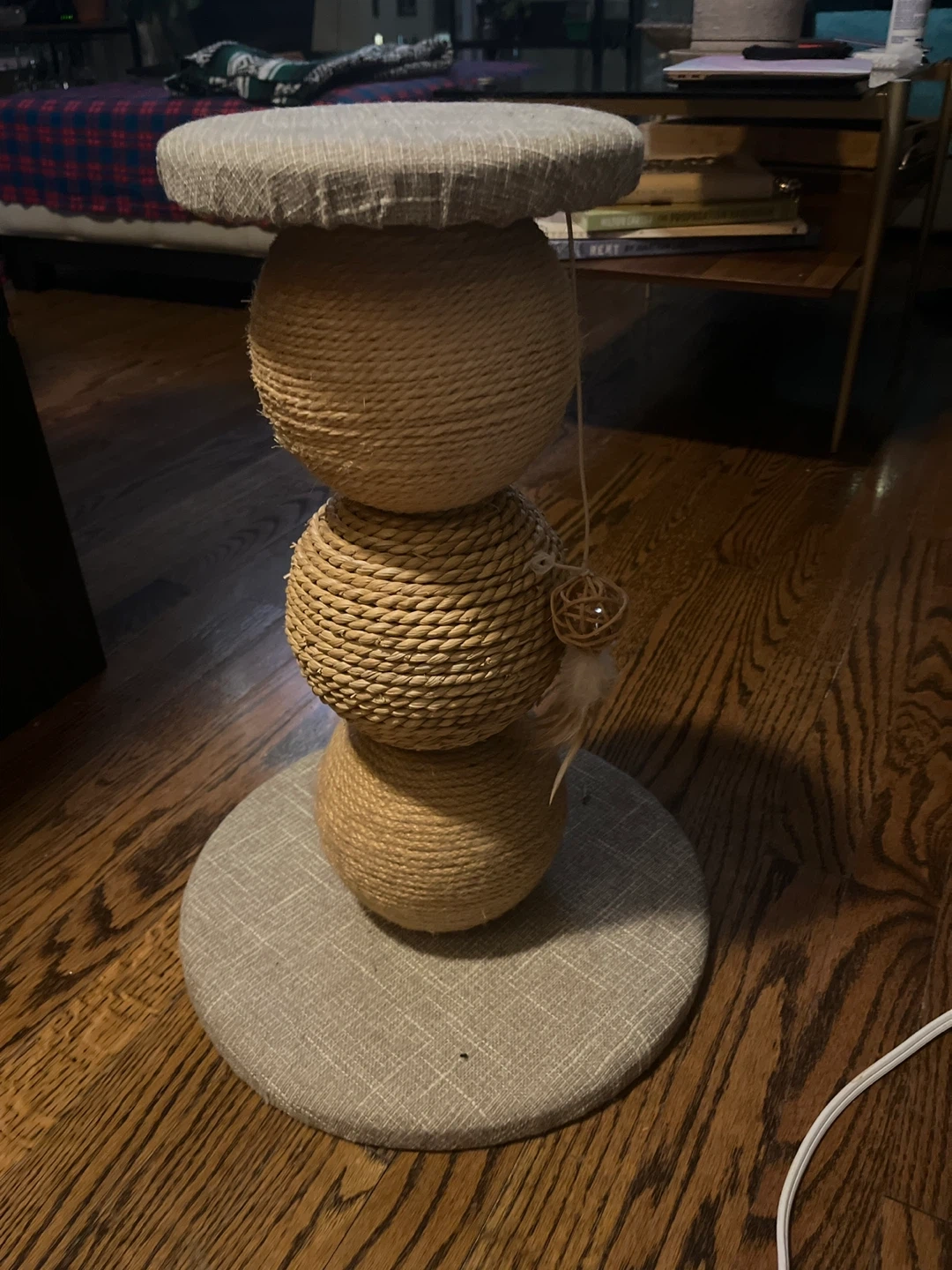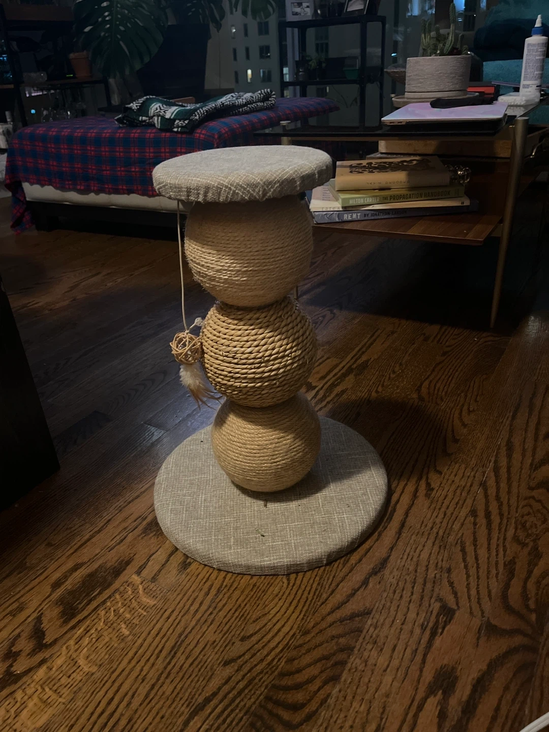Brand new cat scratching post. It's in great condition, my cats are showing absolutely no interest in it. It has a sturdy base and multiple levels for your cat to scratch and play on