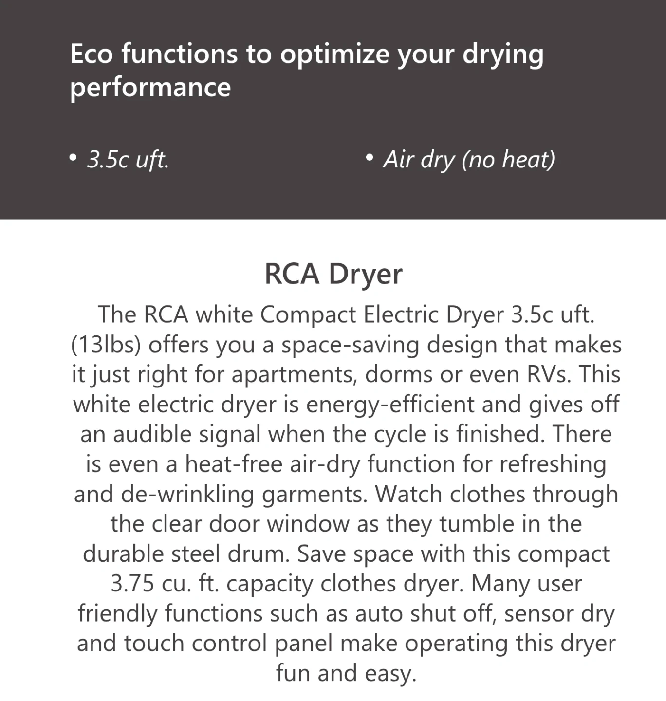 This RCA compact electric dryer is perfect for apartments, dorms, or even RVs!