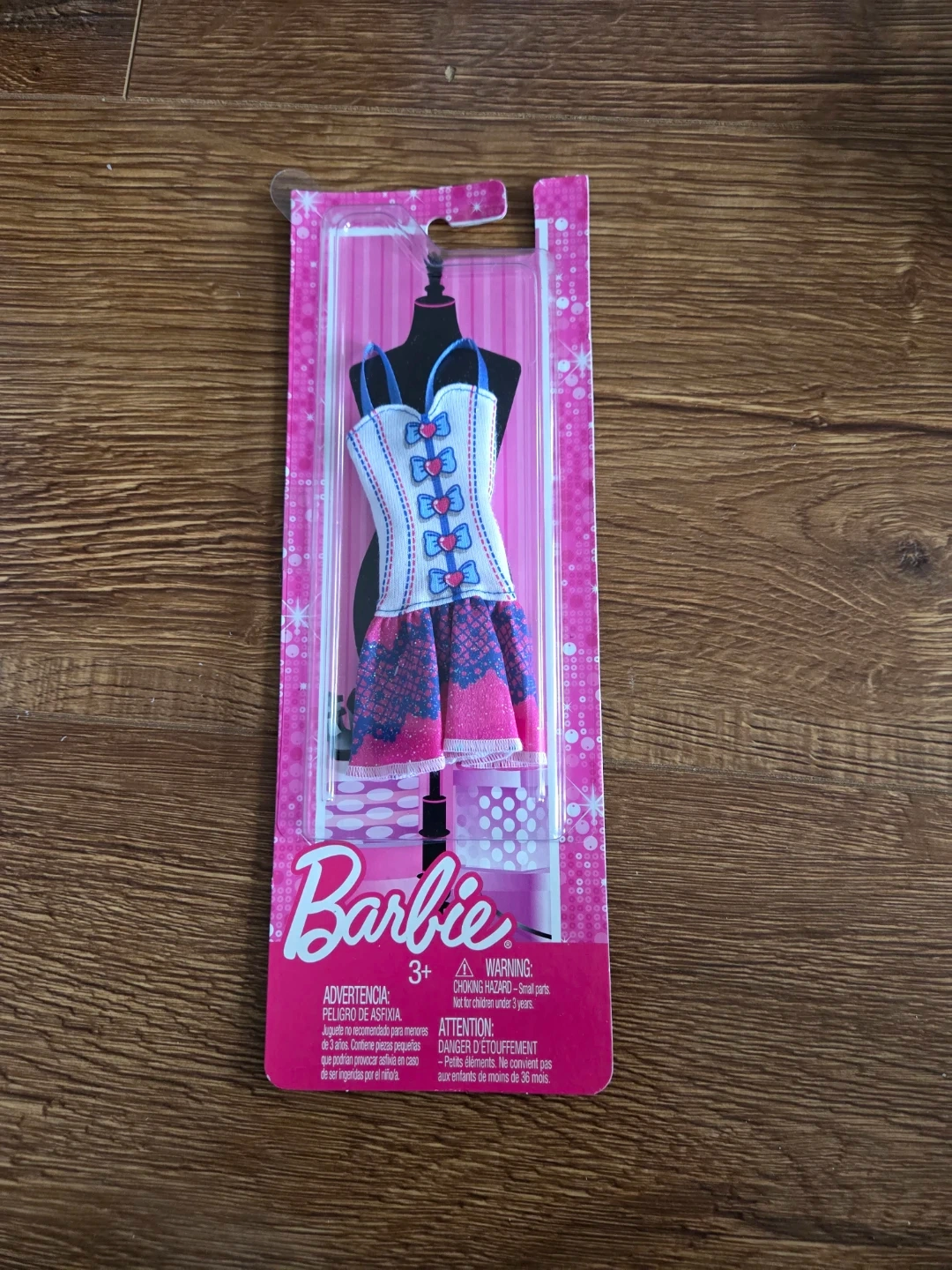 Selling a brand new Barbie outfit, still in its original packaging! Recommended for ages 3 and up, it features a cute dress design. Perfect for adding to your Barbie collection!