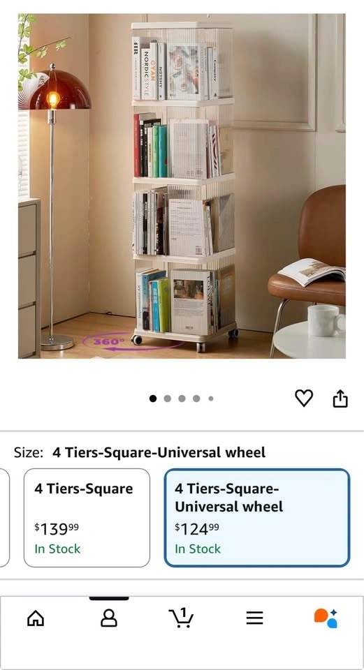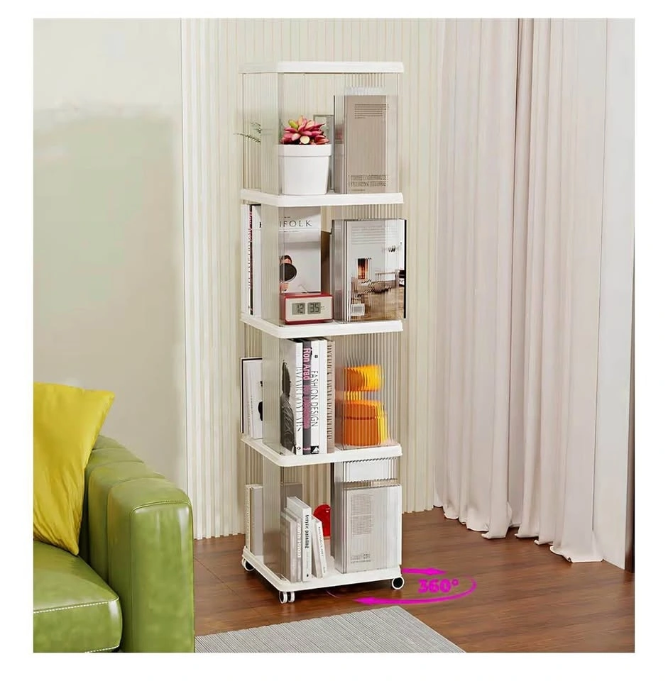 Tower 4 Tiers Bookshelf Mobile Bookshelf White Rolling Shelf
