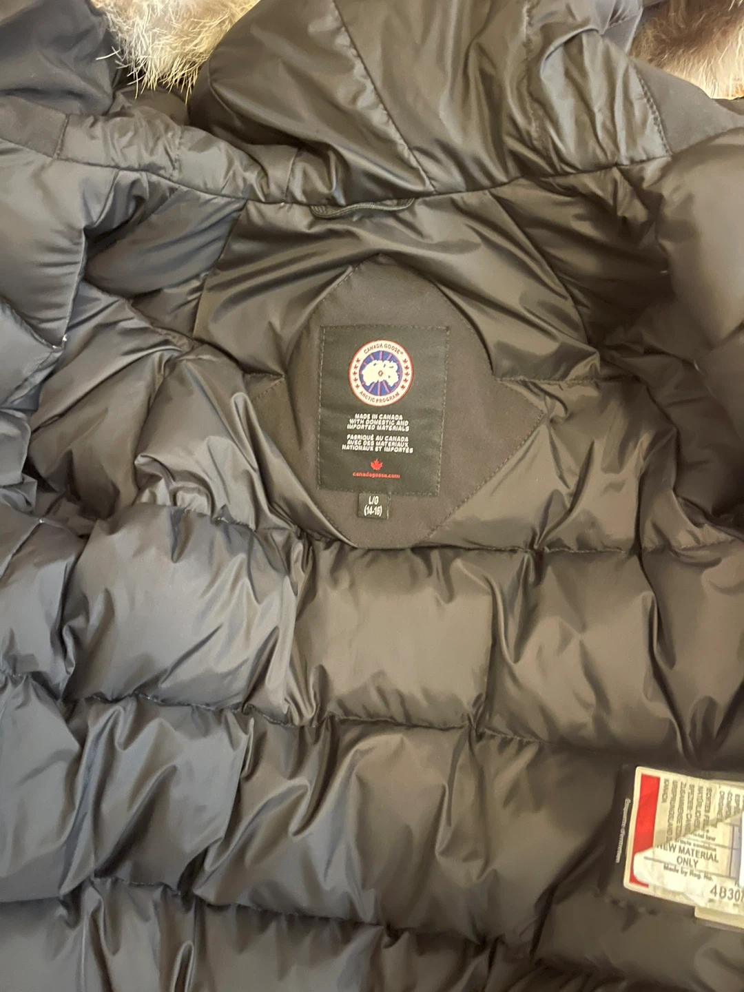 Selling a Canada Goose kids down parka in black. It's a size L (14-16). Perfect for staying warm this winter!