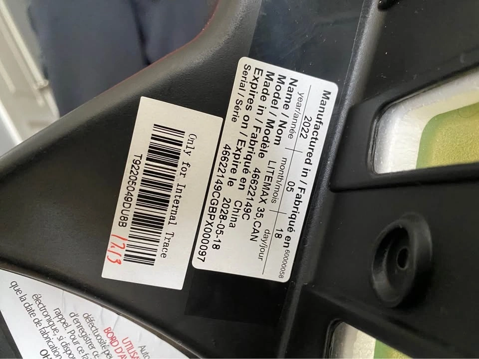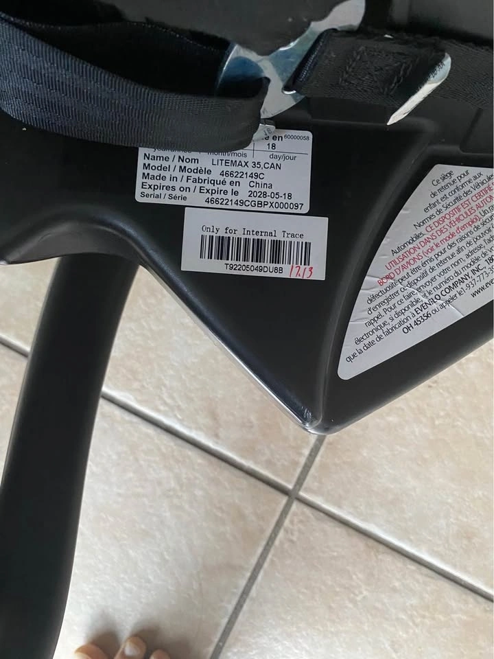 Expires May 18, 2028 base and car seat both (check label); pickup in Bolton.