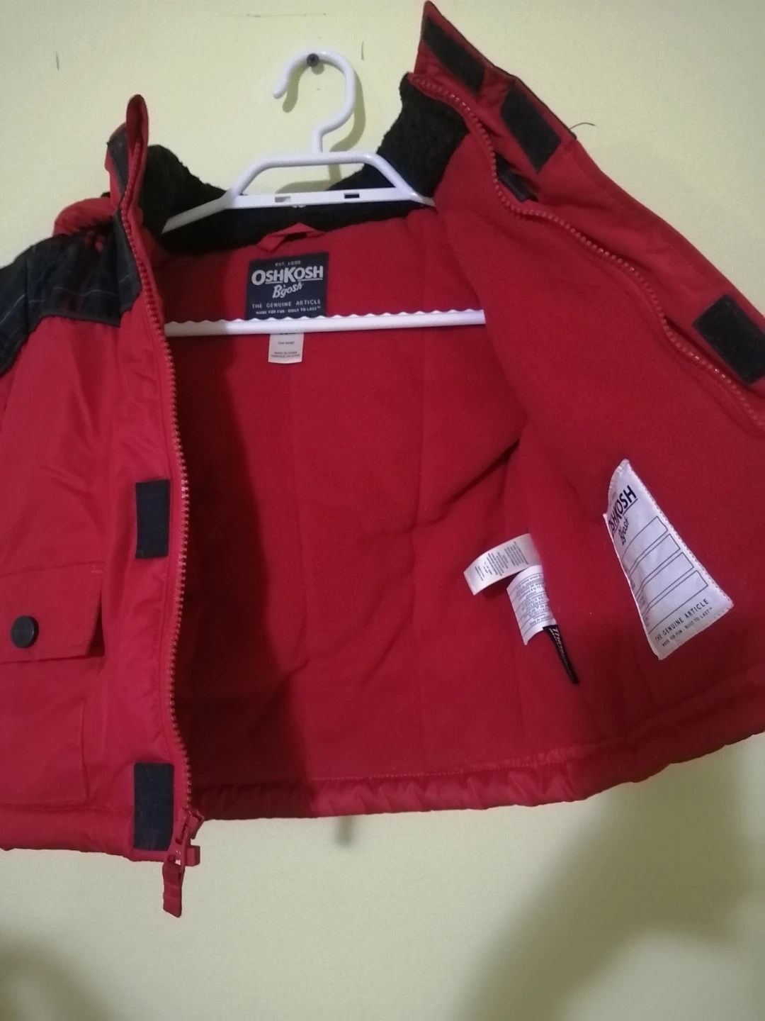 Keep your little one warm with this OshKosh B'Gosh winter jacket! It's red with black accents. Perfect for the cold Canadian weather!