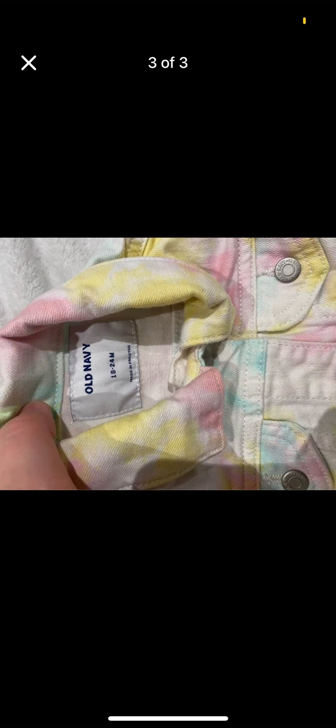 Super cute tie-dye jean jacket from Old Navy! It's in great condition and perfect for your little one. Size 18-24M