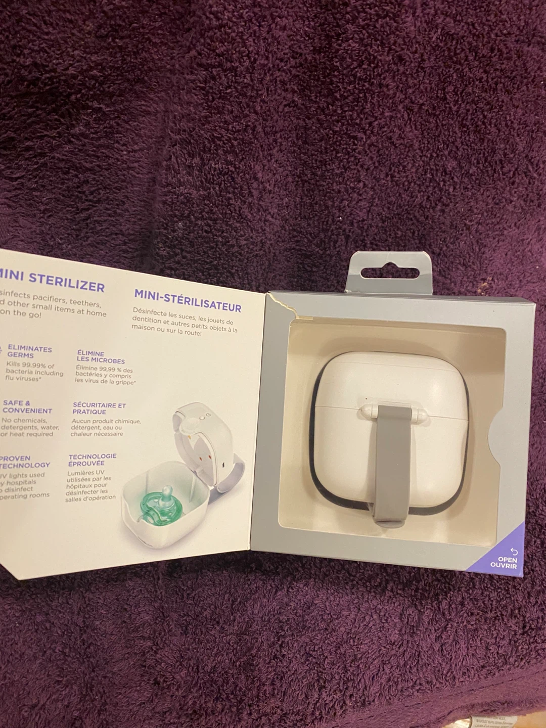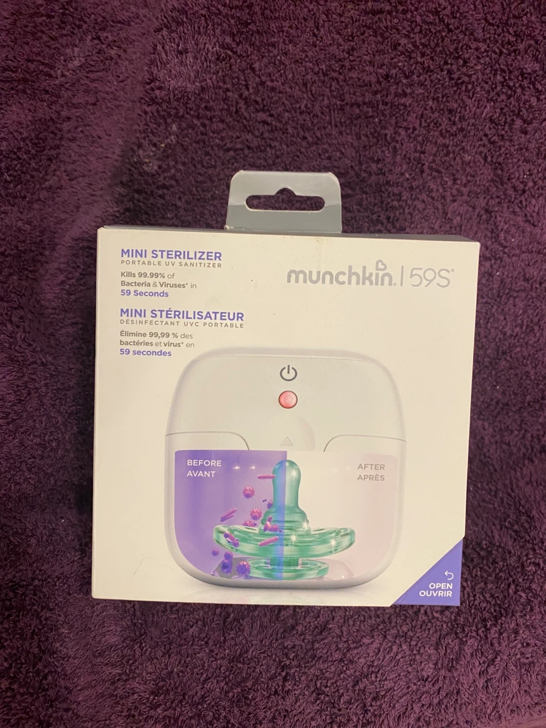 BNIB Selling a Munchkin 59S Mini Sterilizer. It's a portable UV sanitizer perfect for disinfecting pacifiers, teethers, and other small items at home or on the go!