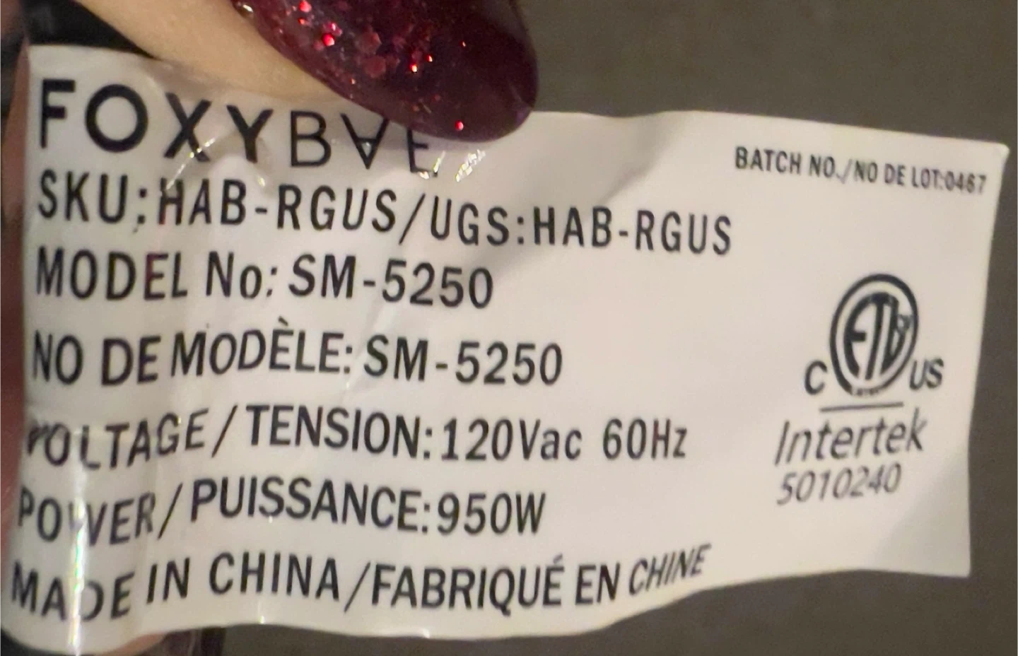 Selling a FoxyBae Blowout Dryer Brush, model SM-5250. This is a 120Vac 60Hz, 950W hair tool. Perfect for quick and easy styling! I got it for Christmas I tried once but I have arm issues can’t use it it’s actually new I don’t have the box to return it,