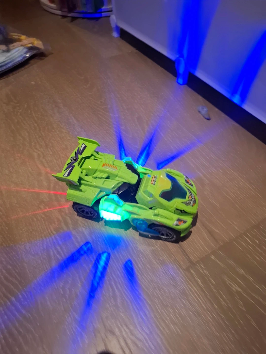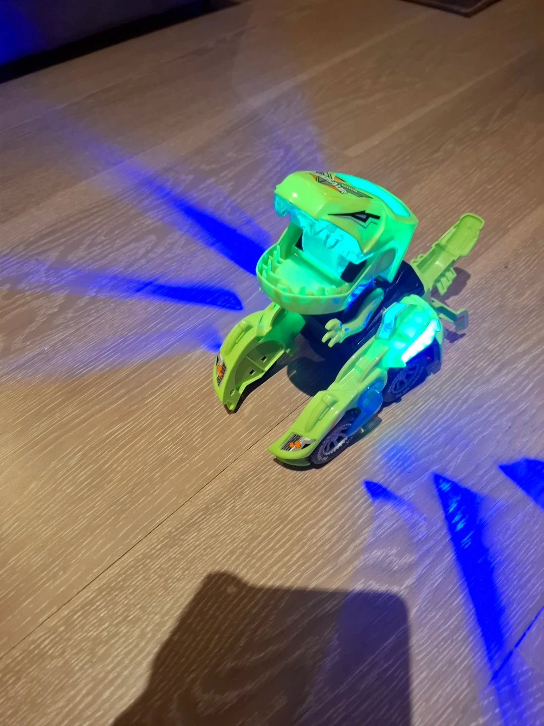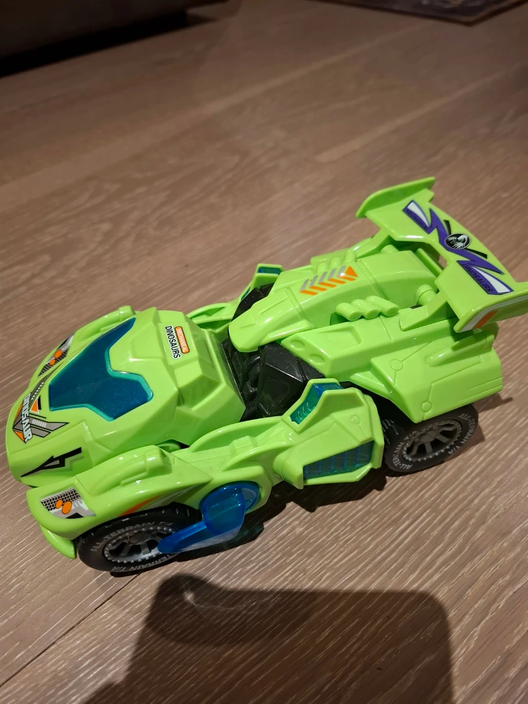 Selling a fun green dinosaur car toy! It's in great shape and ready for a new adventure. This toy features cool lights and a unique design that kids will love