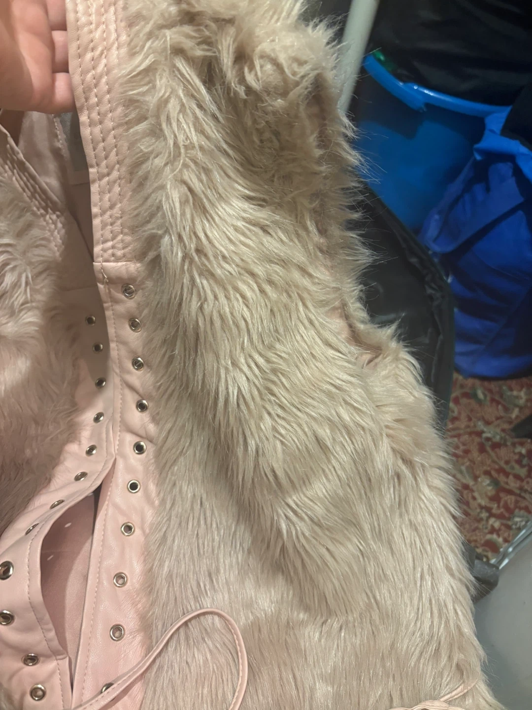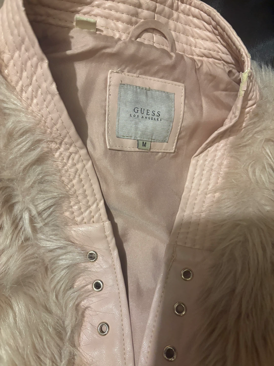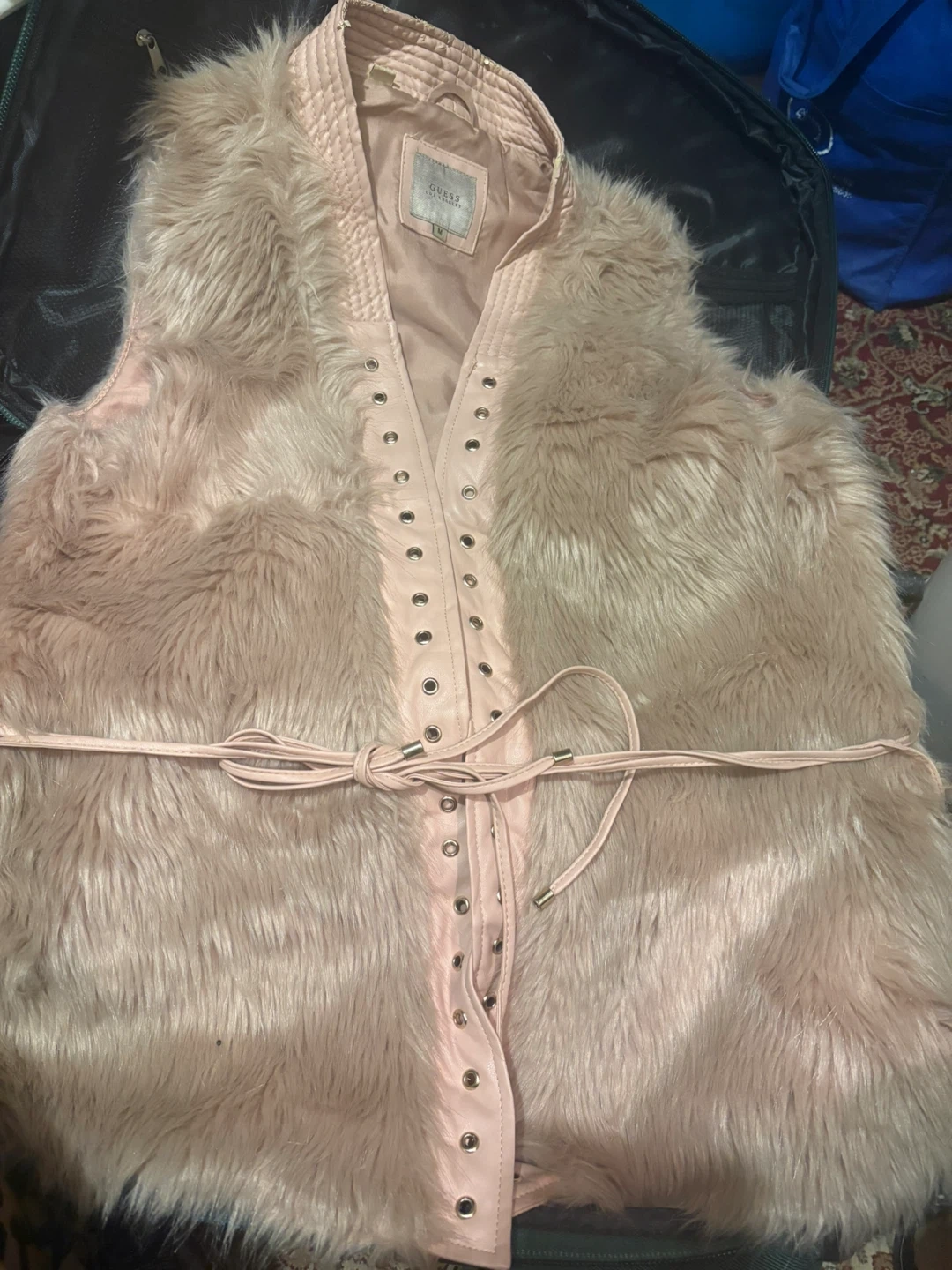 Selling a cute Guess faux fur vest in a size medium. It's a light pink colour and has a tie closure in the front. Perfect for layering!
