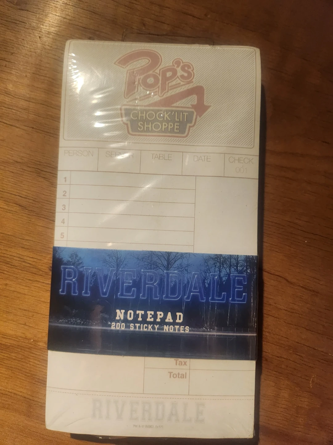 I am selling a brand new Riverdale notepad featuring Pop's Chock'lit Shoppe! It has 200 sticky notes. There are no restaurant order pads like this!