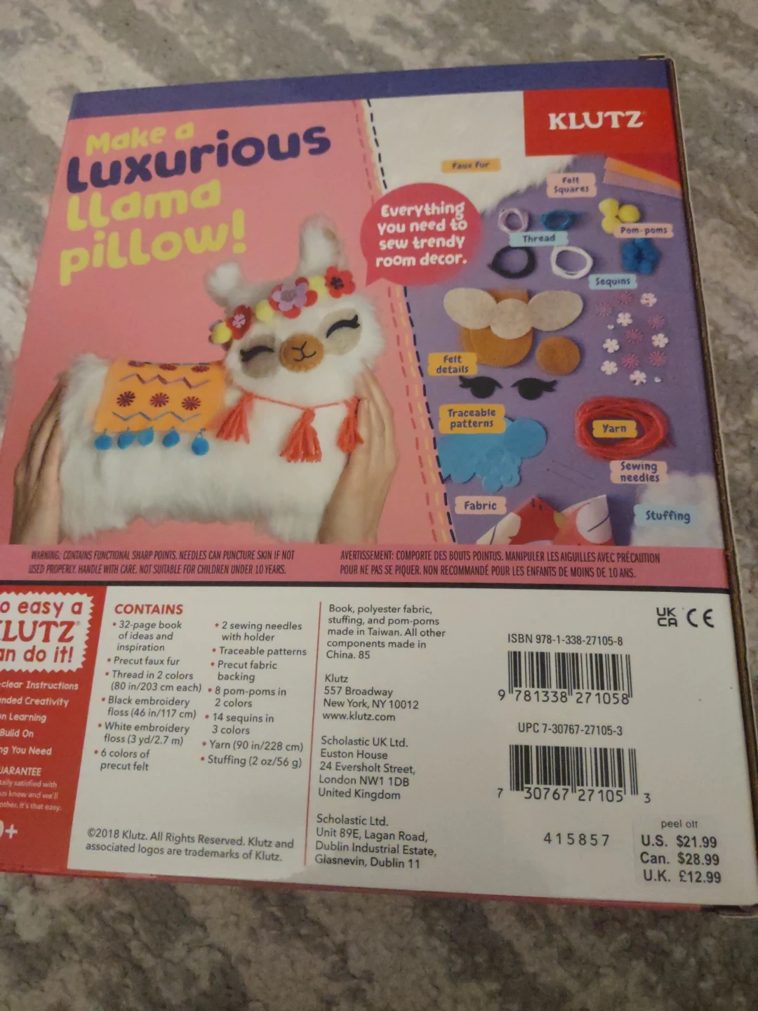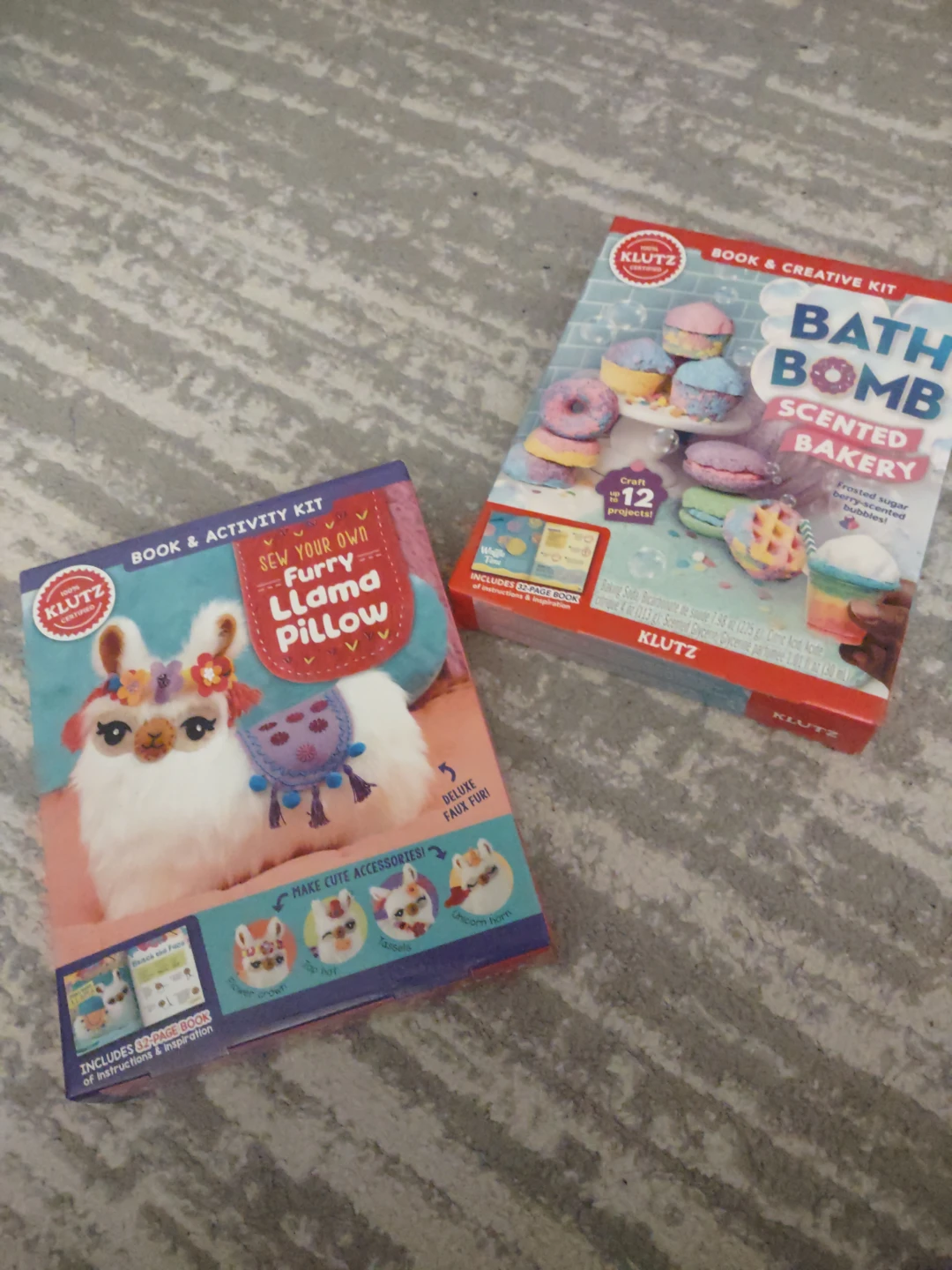 I'm selling two Klutz activity kits! One is a 'Sew Your Own Furry Llama Pillow' kit, and the other is a 'Bath Bomb Scented Bakery' kit. These wouod be an amazing birthday gift! Never opened or used, wouod like to get rid of them. Price negotiable. 25$ for both 15$ for one.
