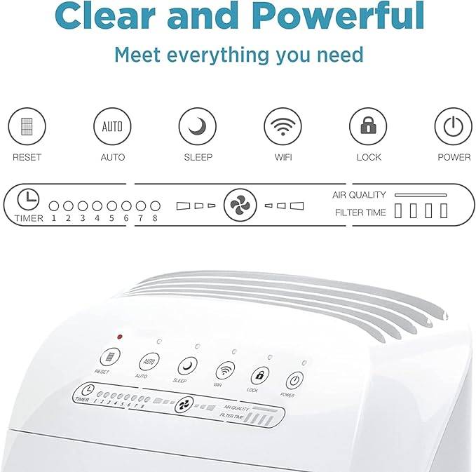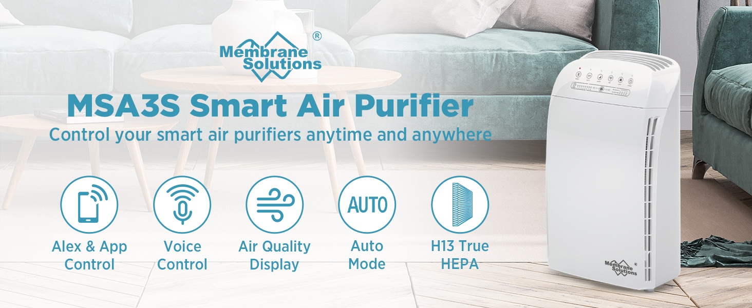 Membrane Solutions MSA3 Air Purifier for Home, Room Up to 1590 sq ft. H13 True HEPA Filter Air Purifier for Bedroom 22db, 100% Ozone Free Air Cleaner for Smoke, Pet Odor Remove 99.97% Allergens, Dust
