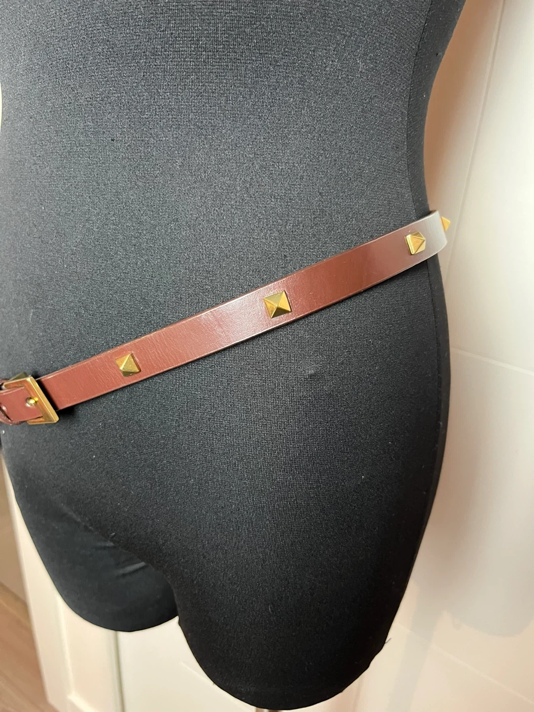 Selling a cute brown studded belt. It measures approximately 39 inches in length. Perfect to add a little edge to any outfit!
