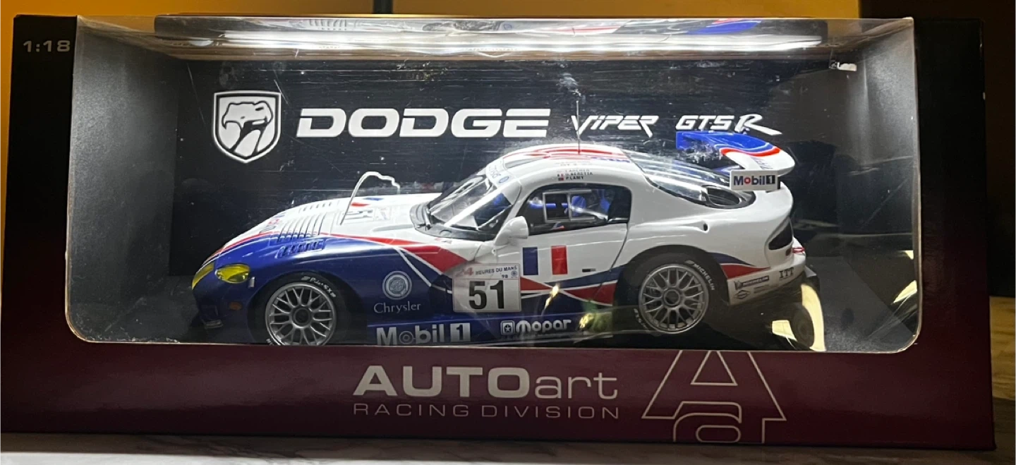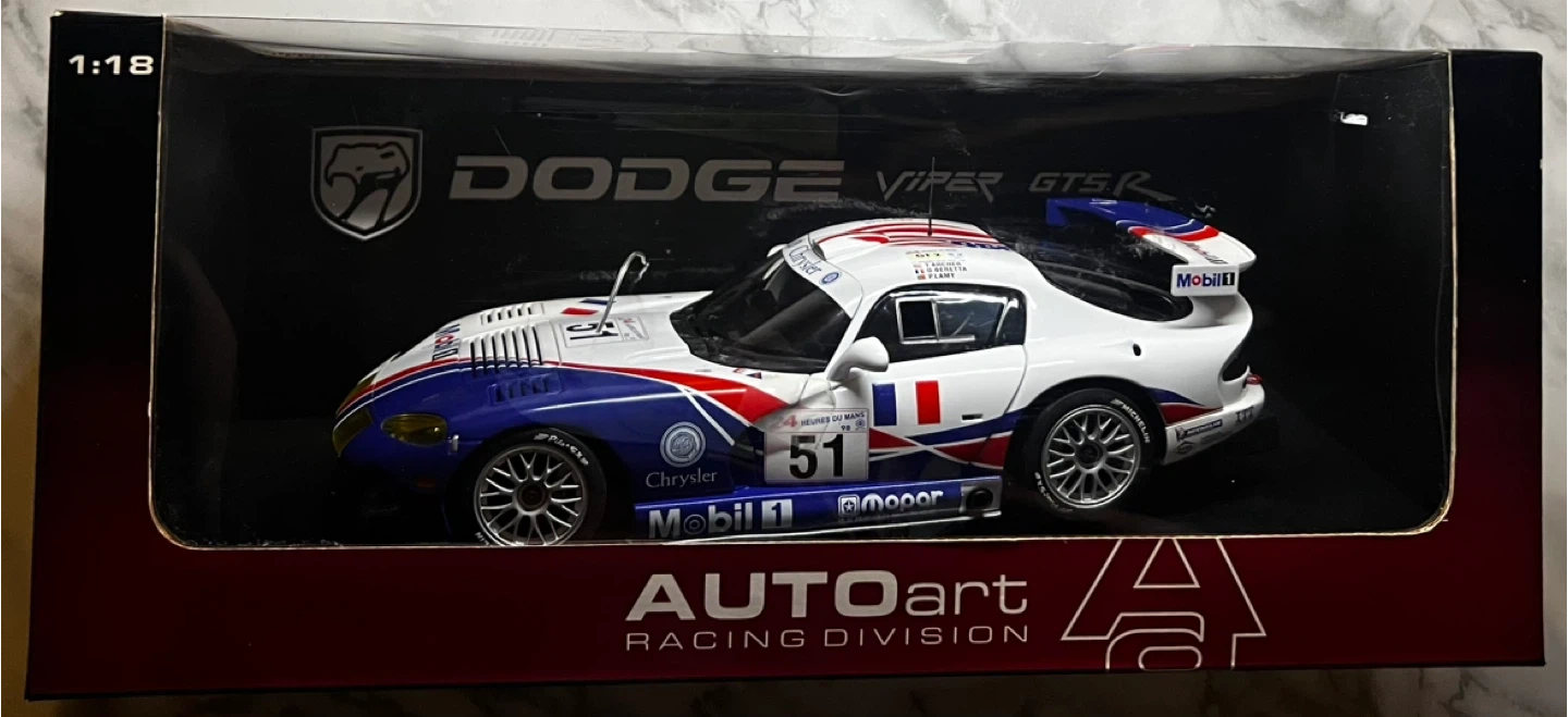 Selling a Dodge Viper GTS-R #51 diecast model car. It's a 1:18 scale model from AUTOart Racing Division.