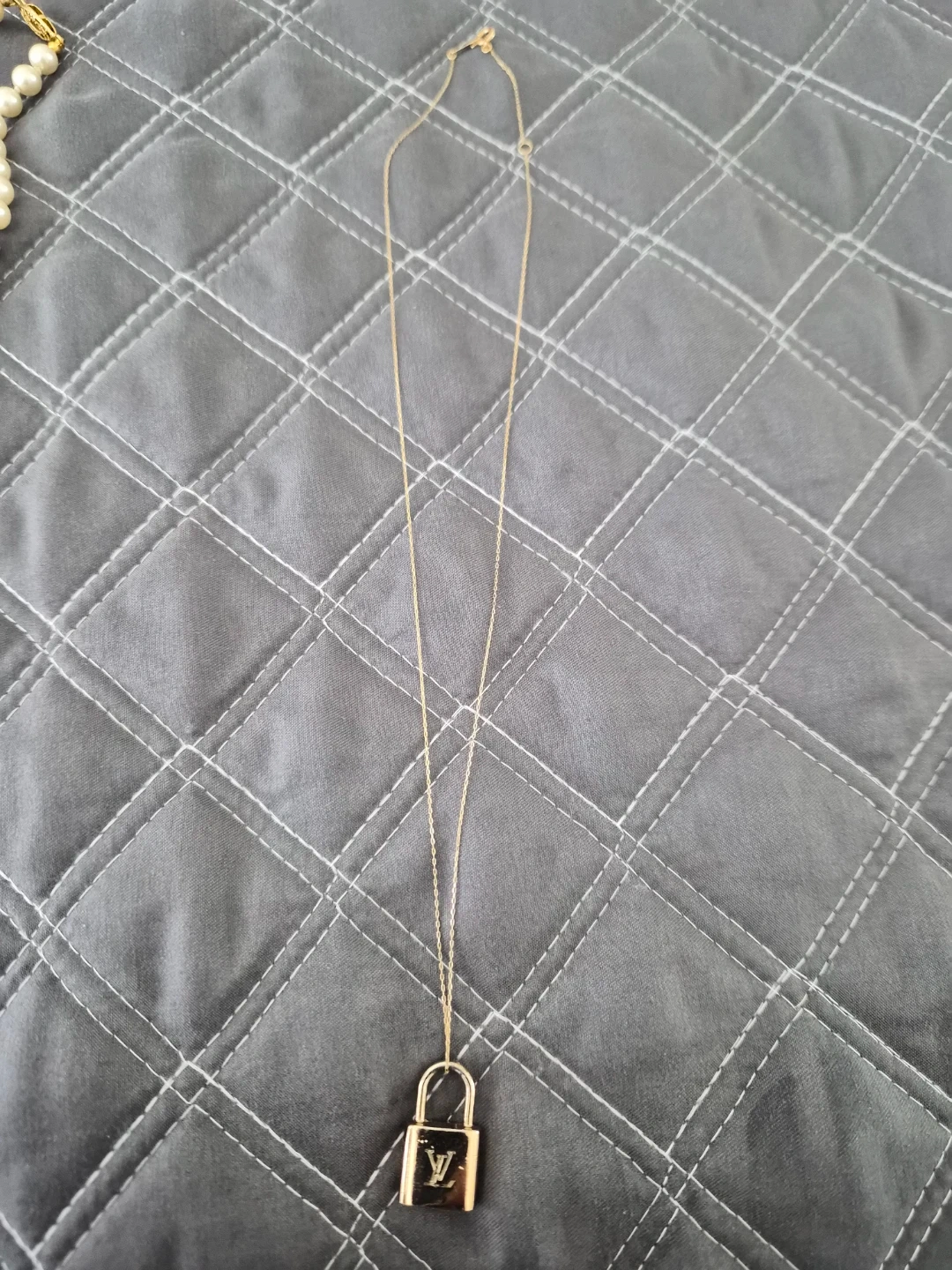 Buy & SellUpcycled Louis Vuitton Lock Pendant in 18K YG NecklaceUpcycled Louis Vuitton Lock Pendant in 18K YG Necklace$270Authentic Louis Vuitton lock in a 18K yellow gold dainty necklace. WHERE TO MEETCheck LocationView MapSELLERJodyWhalley14813 reviews1 chats·1 favorites·26 viewsSEND CHAT TO SELLERHi Jody! I’m interested in your listing.Hi Jody! I’m interested in your listing.Get the Karrot app to chatSign In to chat