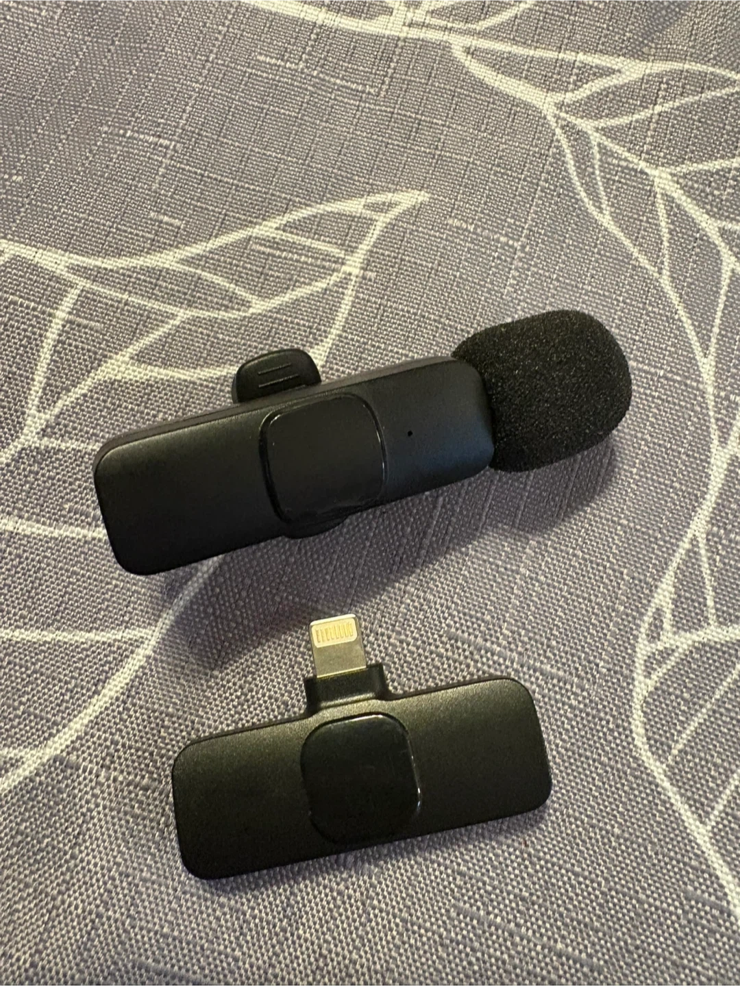 Selling a wireless microphone designed for iPhones. It includes both the microphone and receiver. Perfect for recording clear audio on the go! Didn’t end up using it as the lightening cable is the phone plug in end.