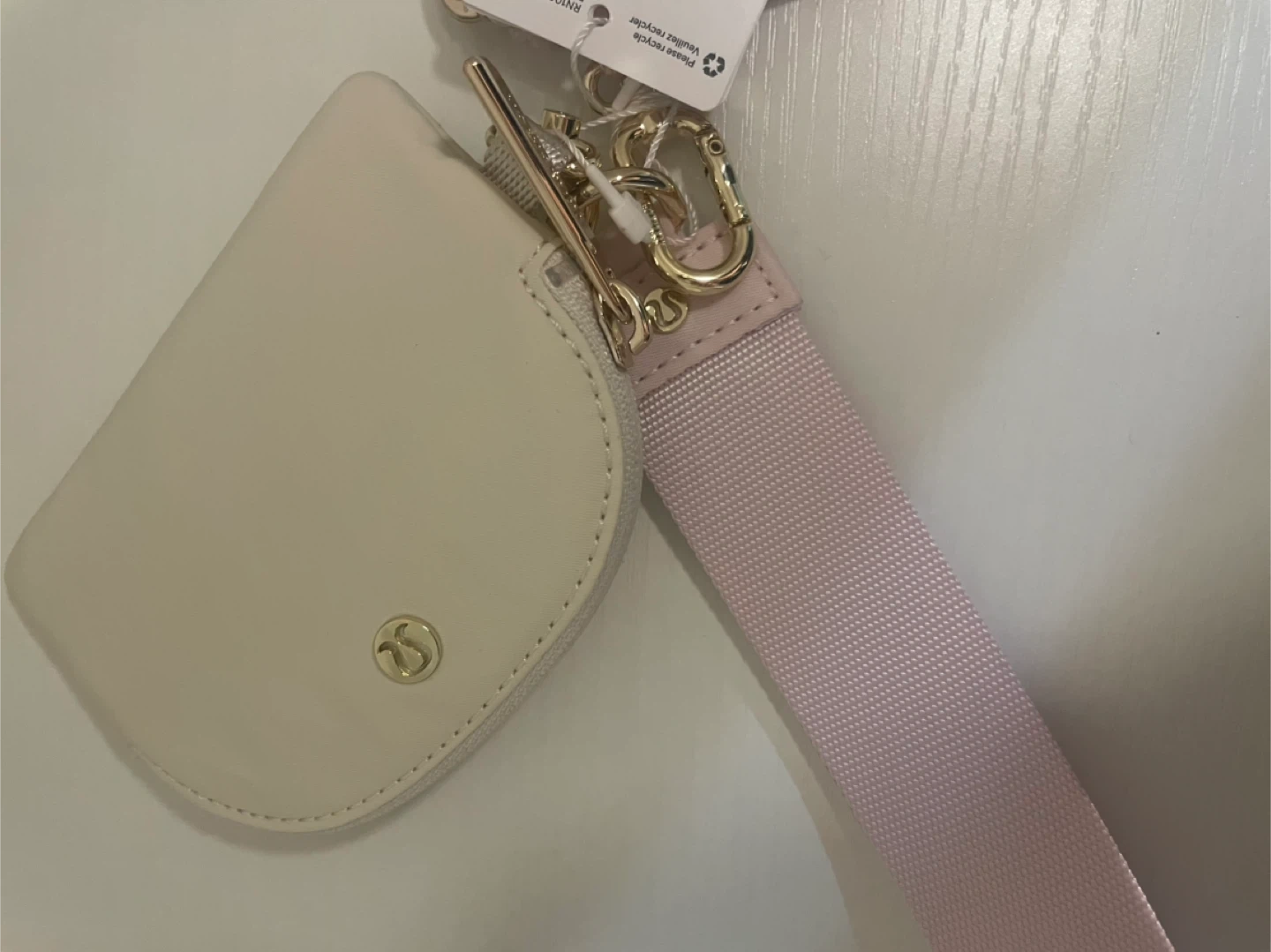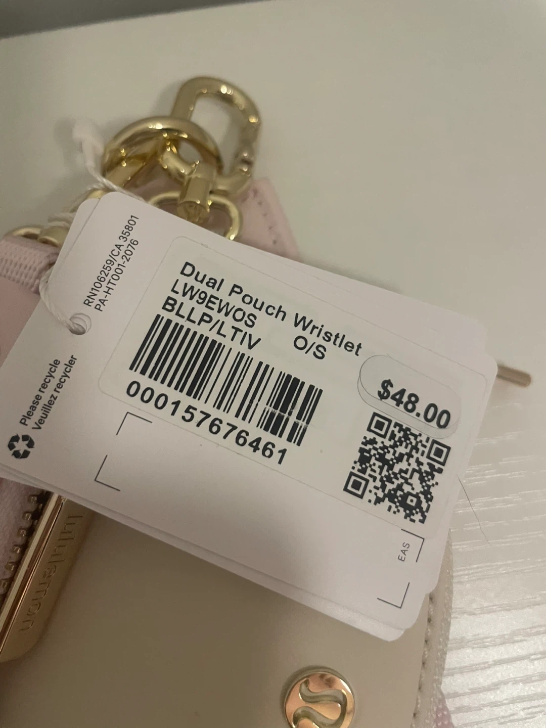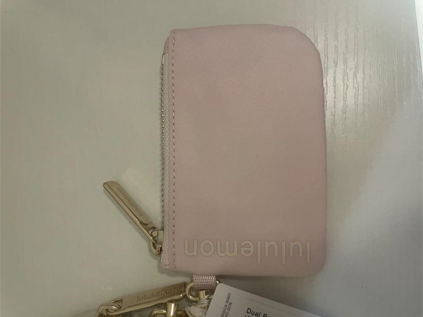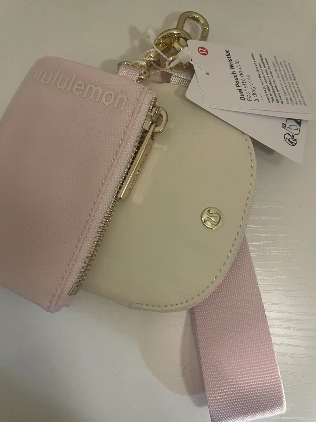 Selling a Lululemon Dual Pouch Wristlet in a cute pink and white colour. It's a great little accessory to keep your essentials organized. Size is O/S. Originally bought for $48!