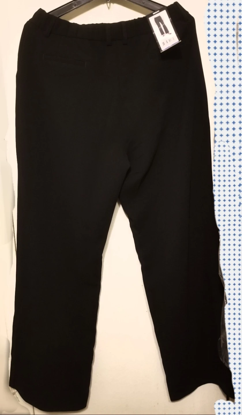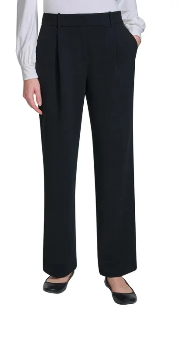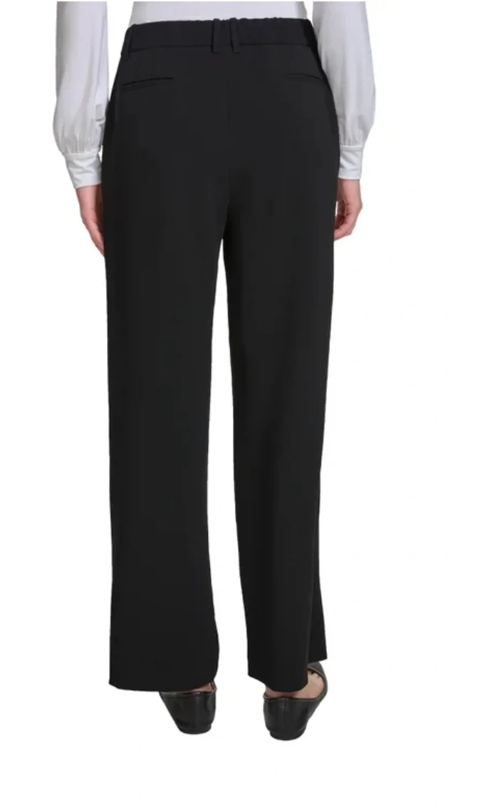 Selling a pair of DKNY black wide leg trousers. They are made of polyester.