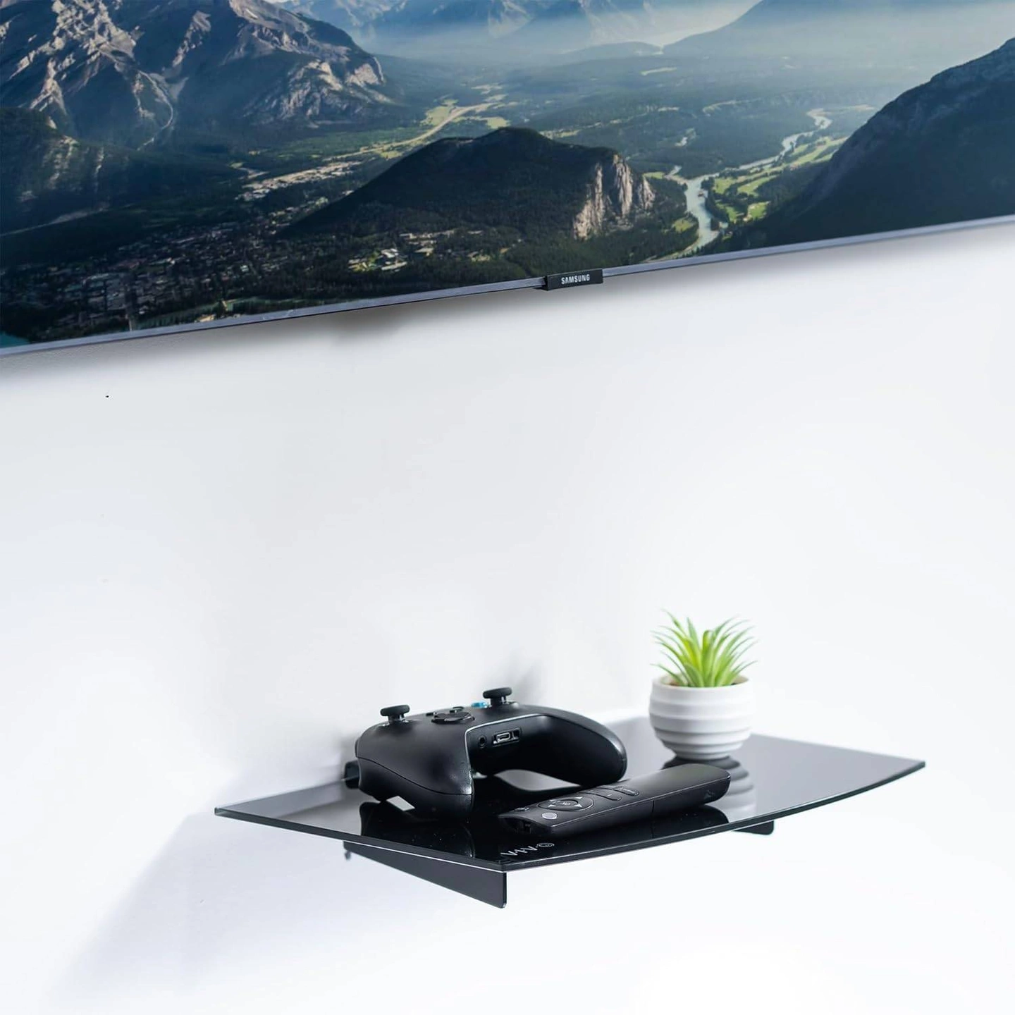 VIVO Floating Wall Mount Tempered Glass Shelf for DVD Player, Audio, Gaming System, Streaming Devices, Black, MOUNT-SF011