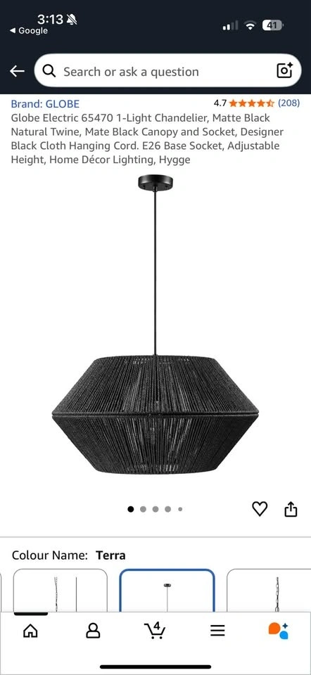 Globe Electric 65470 1-Light Chandelier, Matte Black Natura