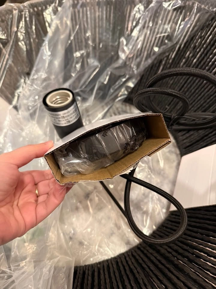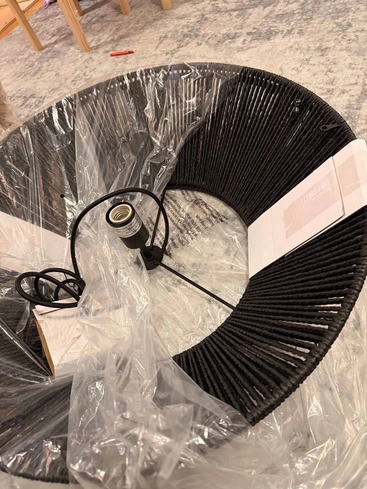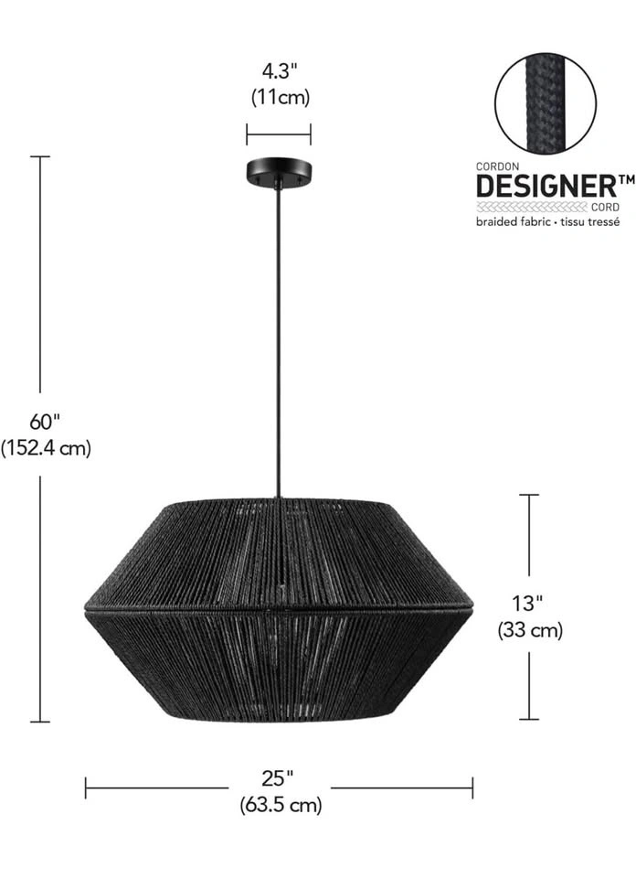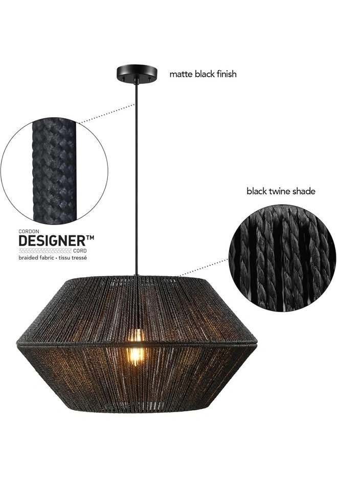 Globe Electric 65470 1-Light Chandelier, Matte Black Natural Twine, Matte Black Canopy and Socket, Designer Black Cloth Hanging Cord. E26 Base Socket, Adjustable Height, Home Décor Lighting, Hygge