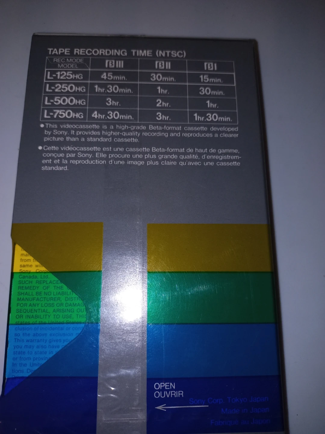 Sony Beta Dynamicron L-125 HG Video Cassette - New!