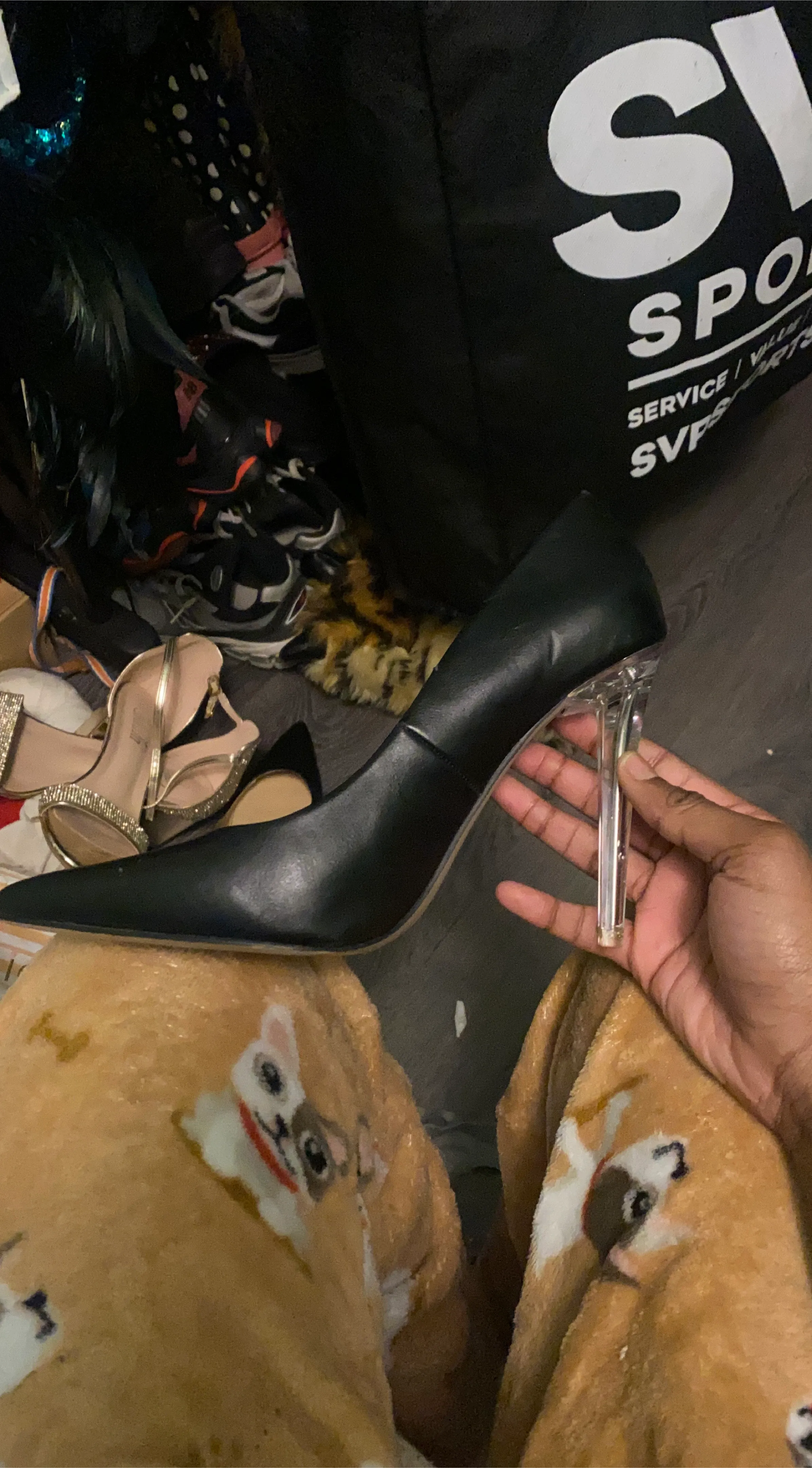 Selling a pair of ShoeDazzle black heels! They have a clear heel and would be great for a night out