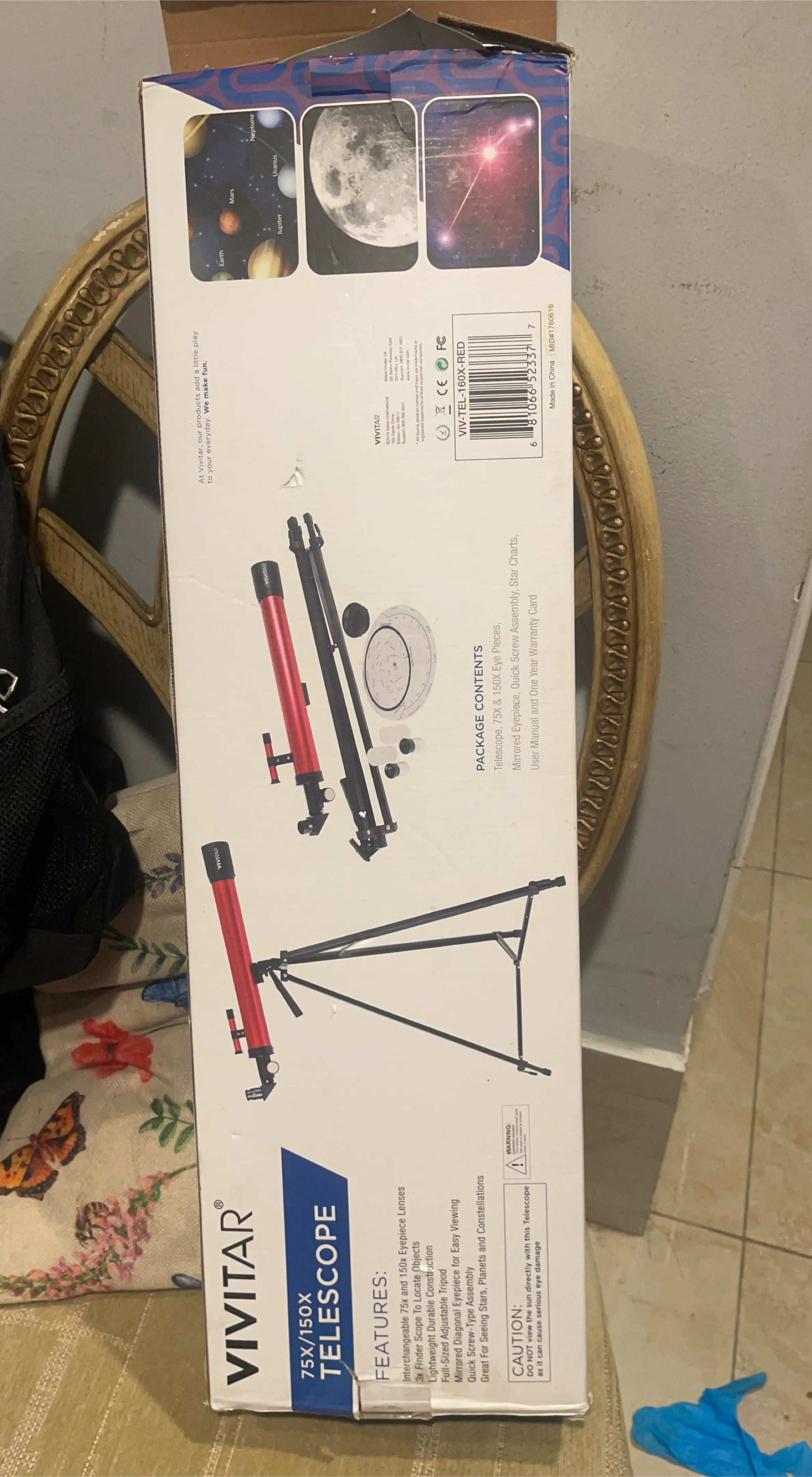 It's great for seeing stars, planets, and constellations! The package includes the telescope, 75x & 150x eye pieces, mirrored eyepiece, quick screw assembly, star charts, user manual, and a one-year warranty card