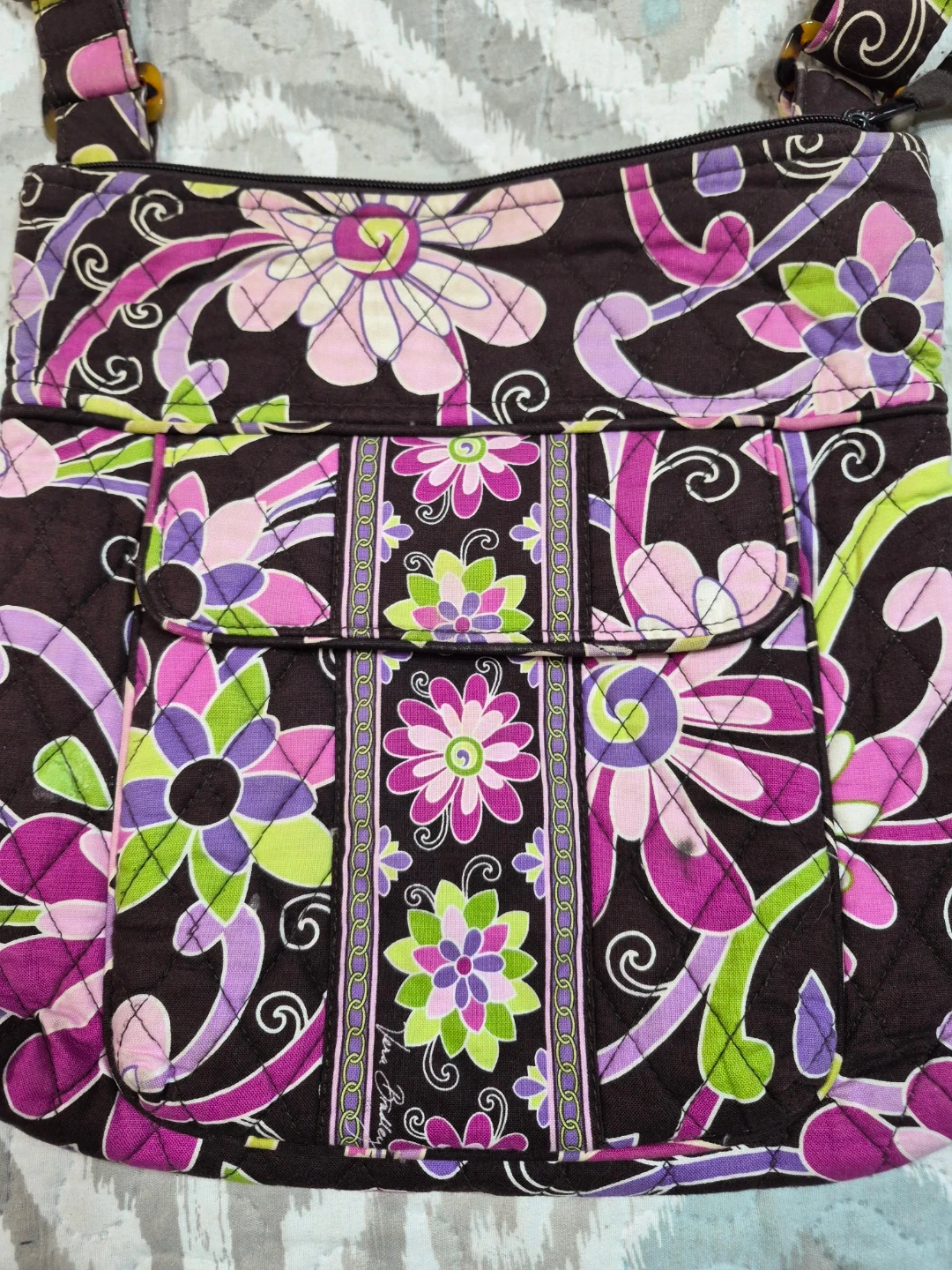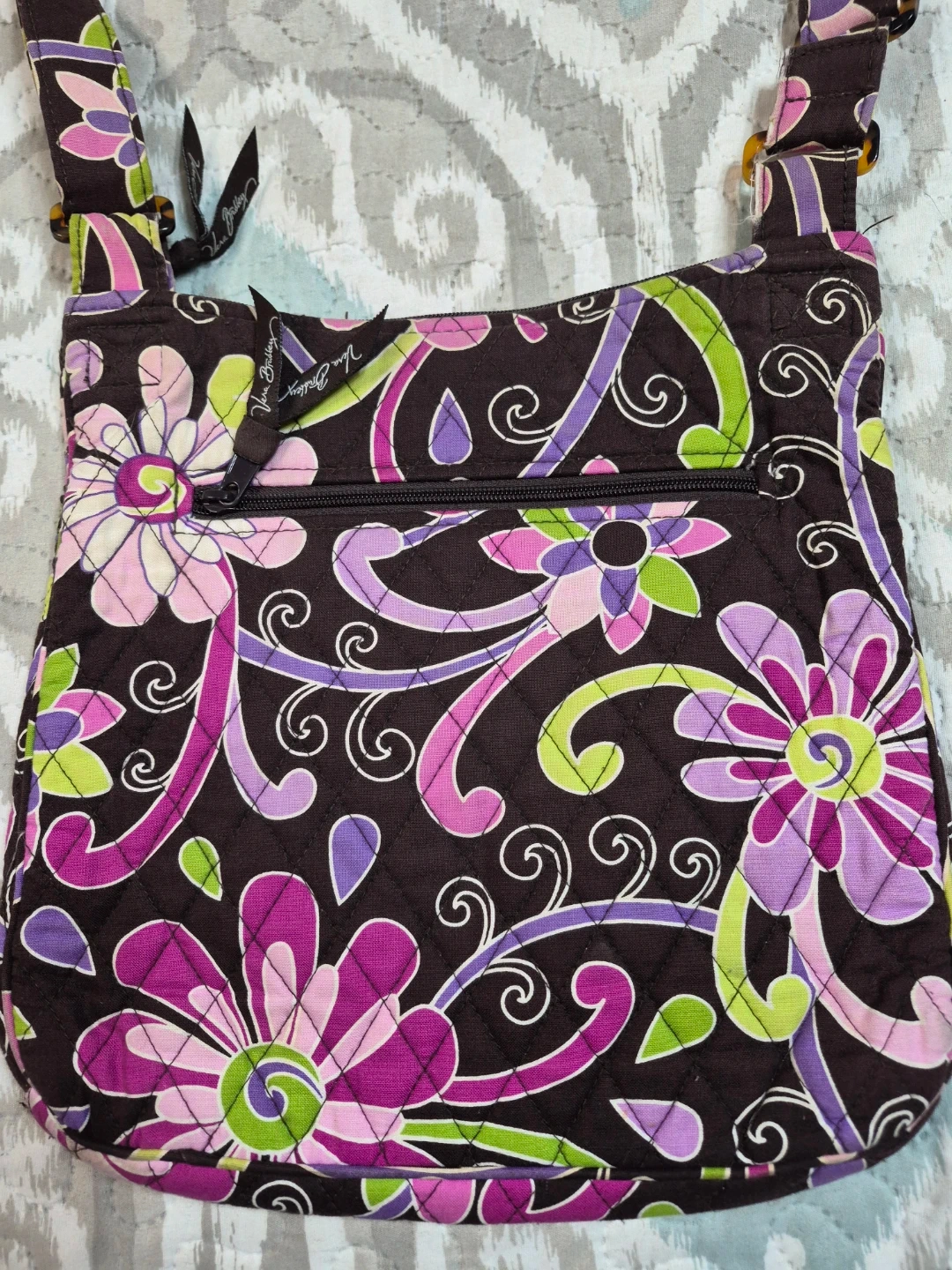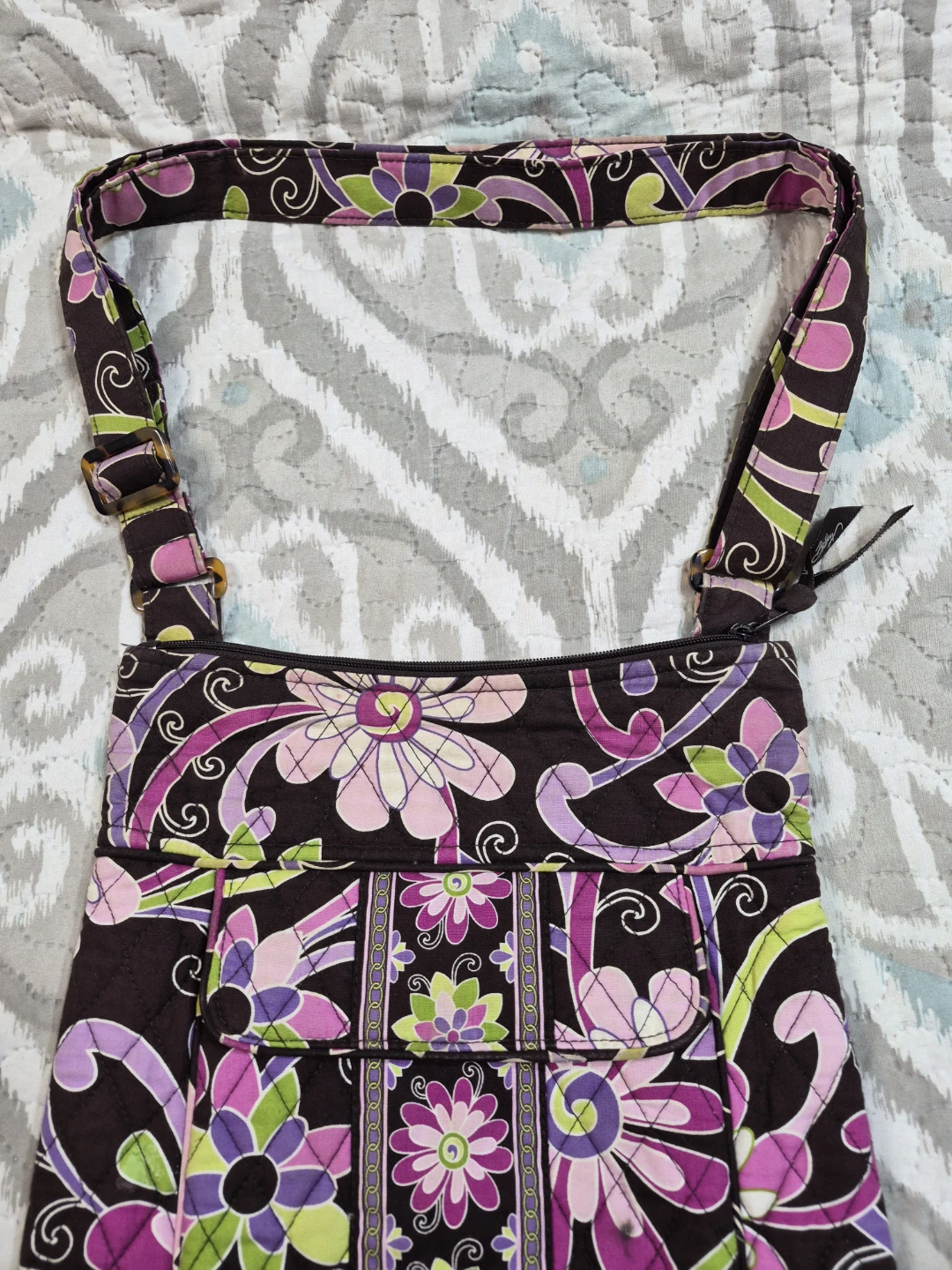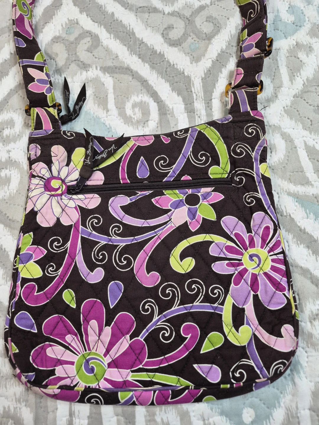 Beautiful Vera Bradley Quilted Style Cross Body Purse, Shoulder Purse Quilted Bag, Quilted Purse approx 11 1/2" x 11 1/2" Great Used Condition, 2 Tiny Imperfections Please see all pictures