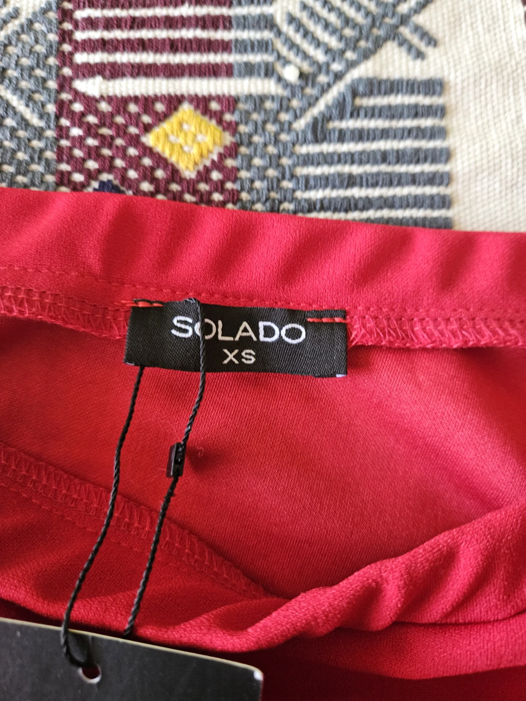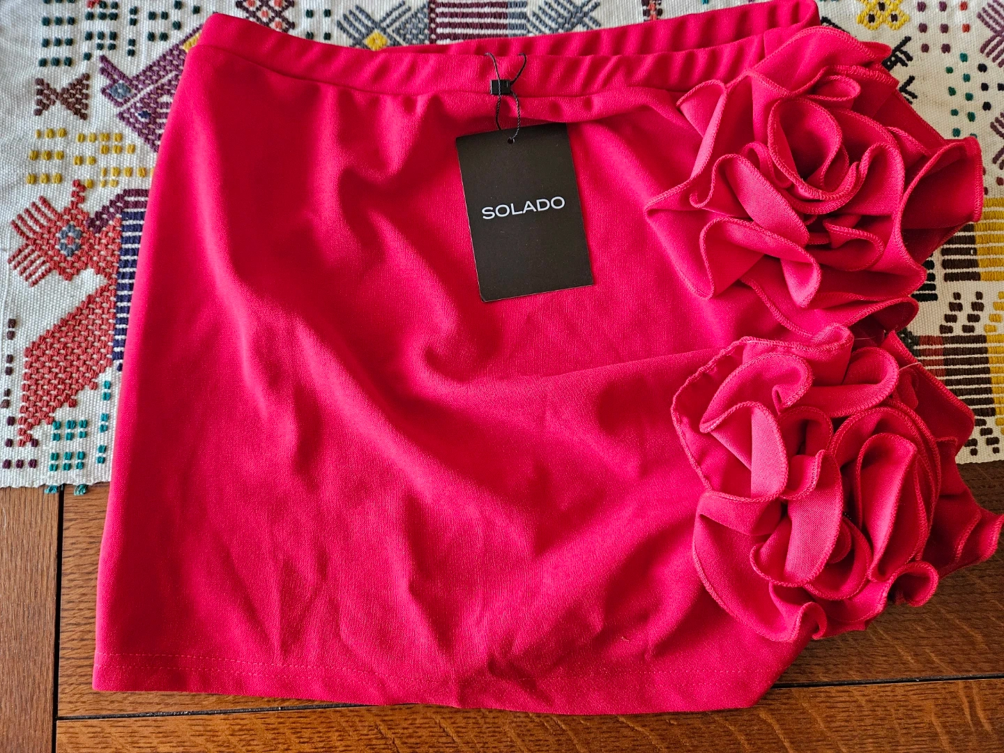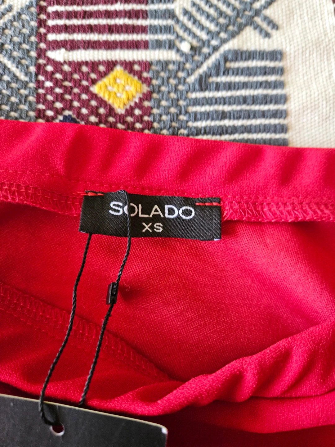Selling a cute SOLADO red skirt with ruffle details! It's a size XS and made of 100% polyester. The skirt is in great condition and ready for a new owner!